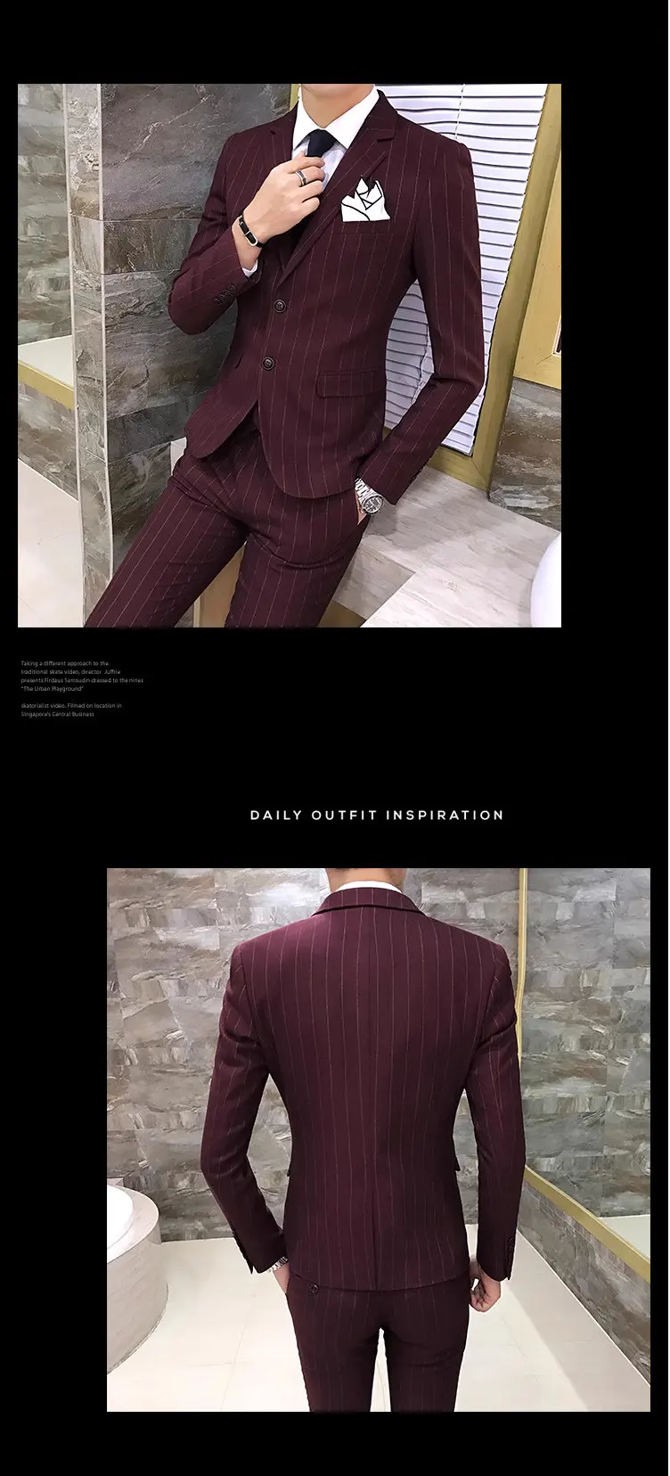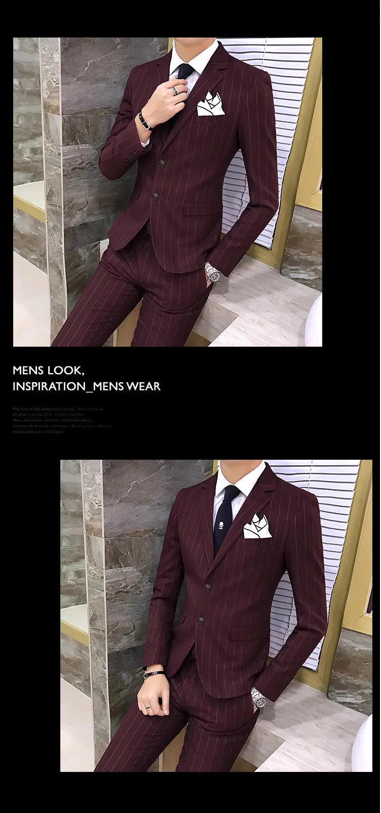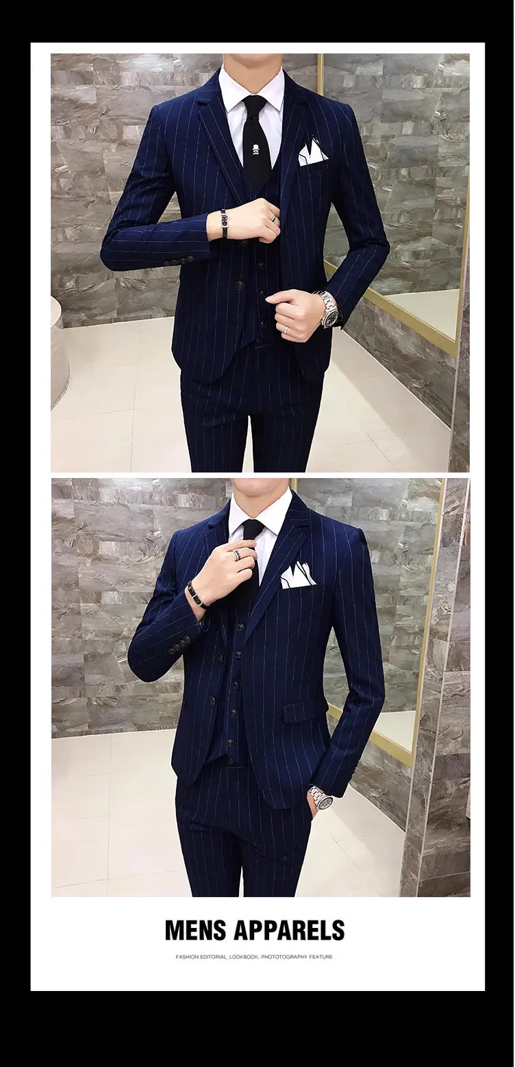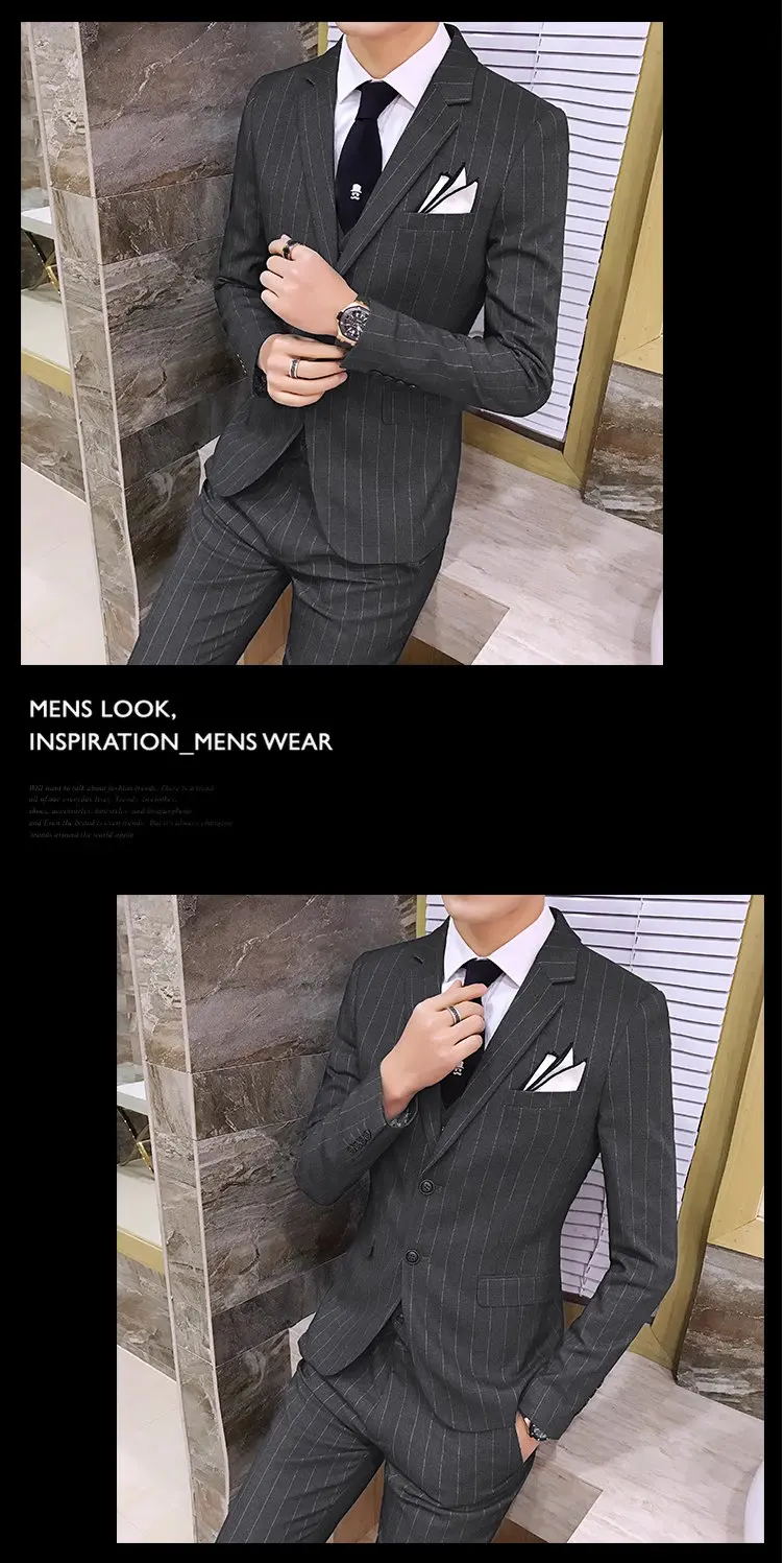 Color: Red, Size: XXXL - Gray Men Classic Striped/Checked Suits, Business Office 3 Piece, Asian Size Slim Fit Men Dress Jacket & Pants with Vest, S-4XL
