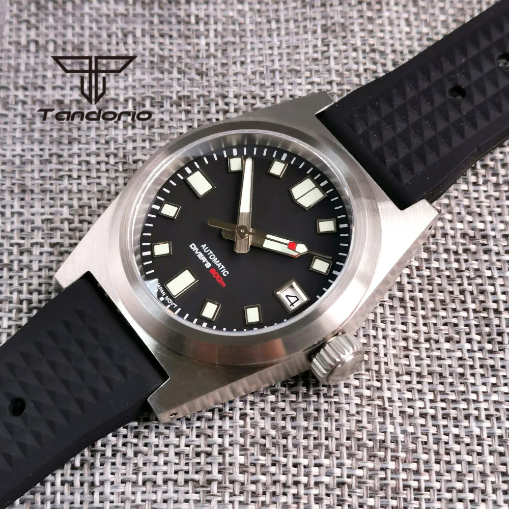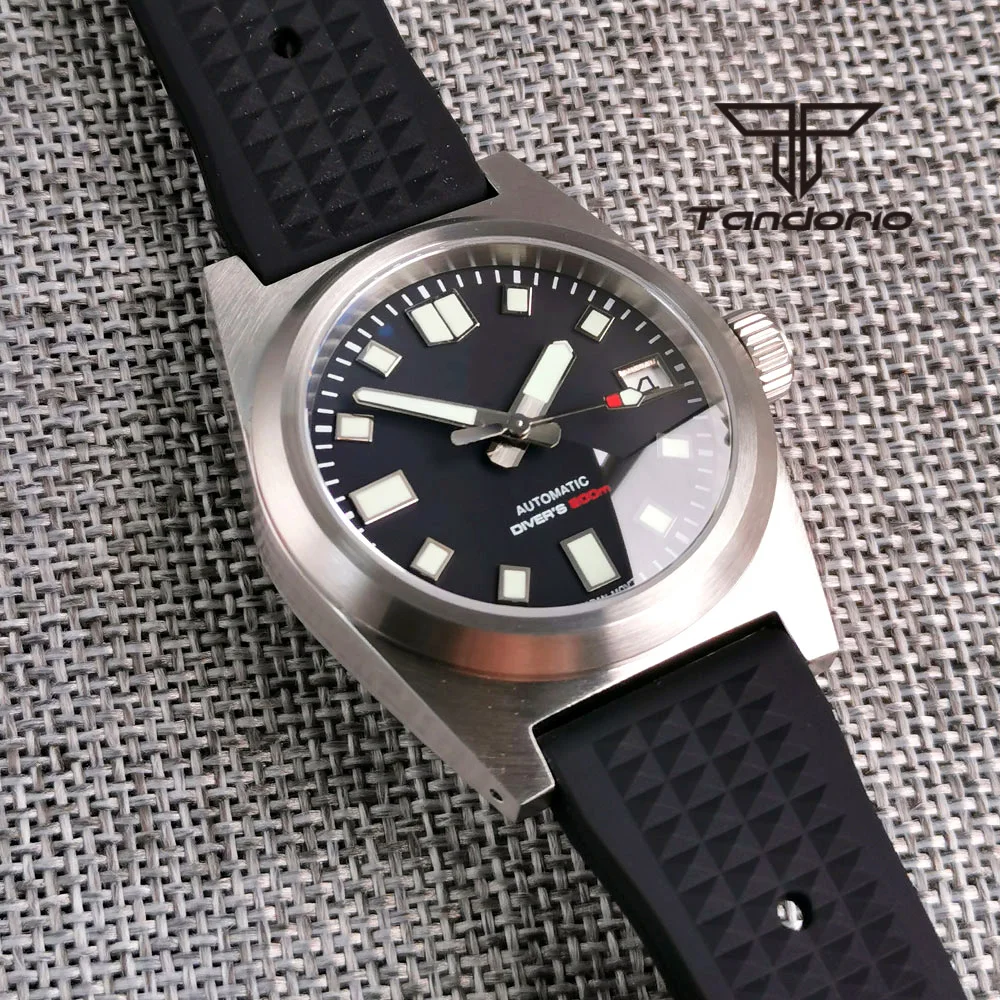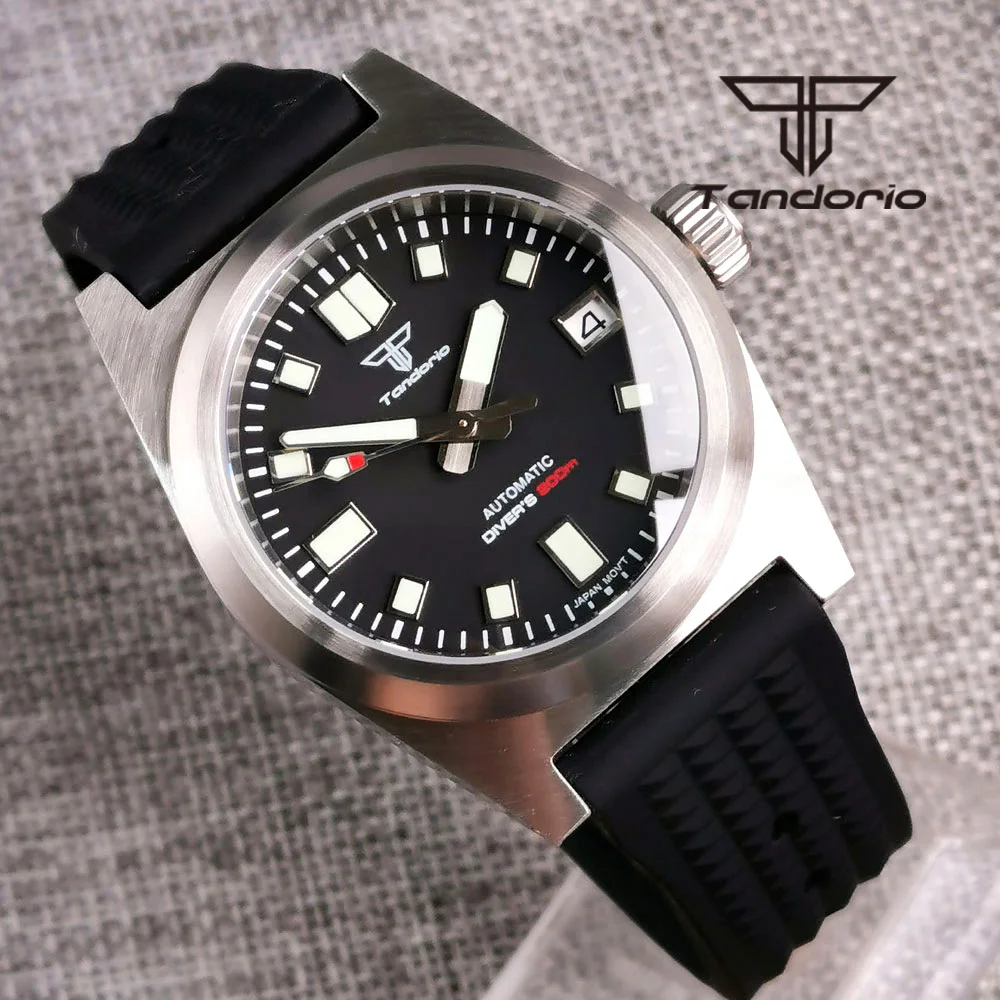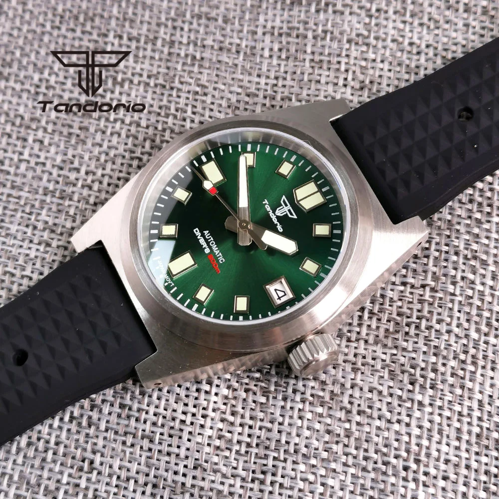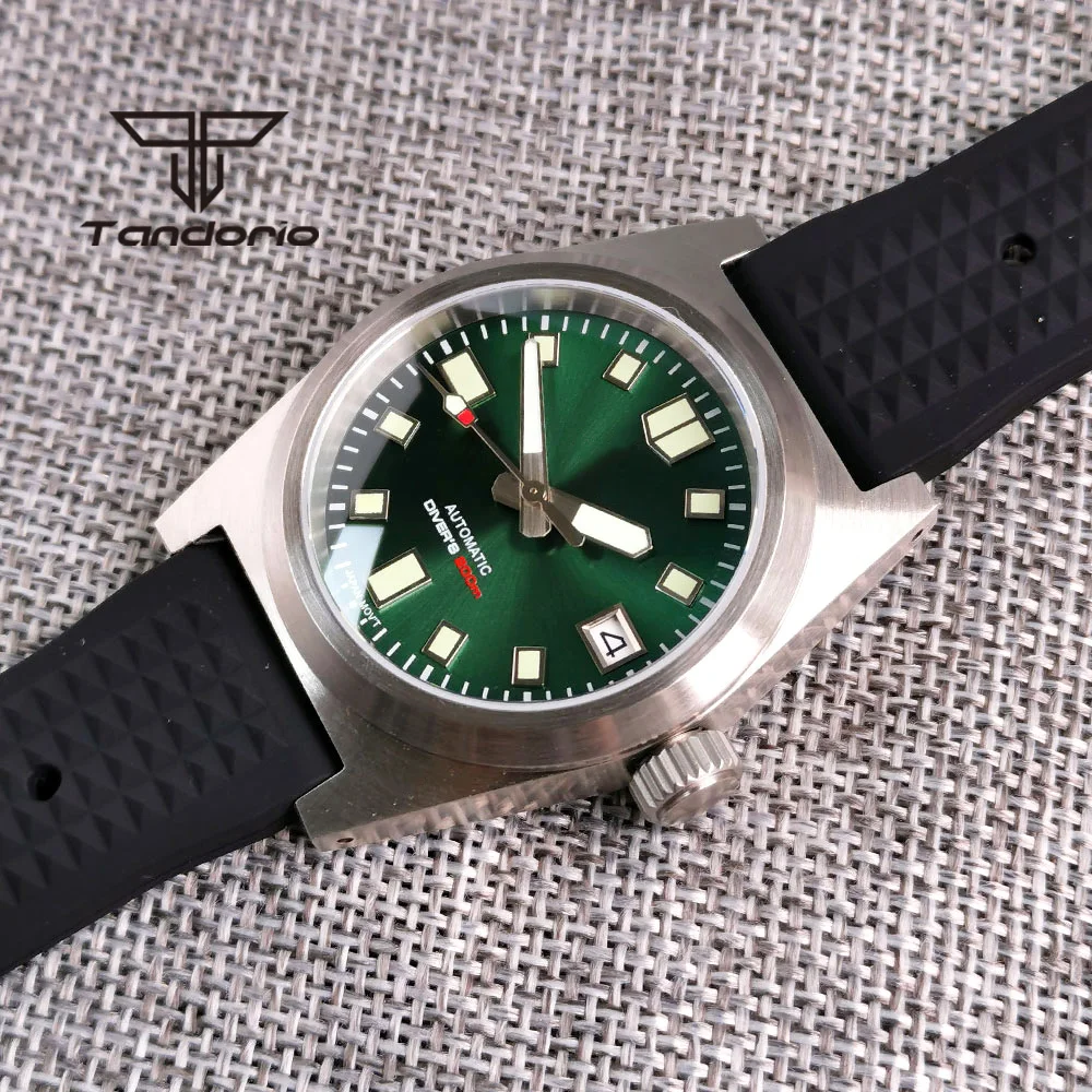 Color: Red - Tandorio Black/Blue/Green Sunburst Dial NH35A 38mm Automatic Men's Watch 200M Brushed Case AR Sapphire Crystal Rubber Strap