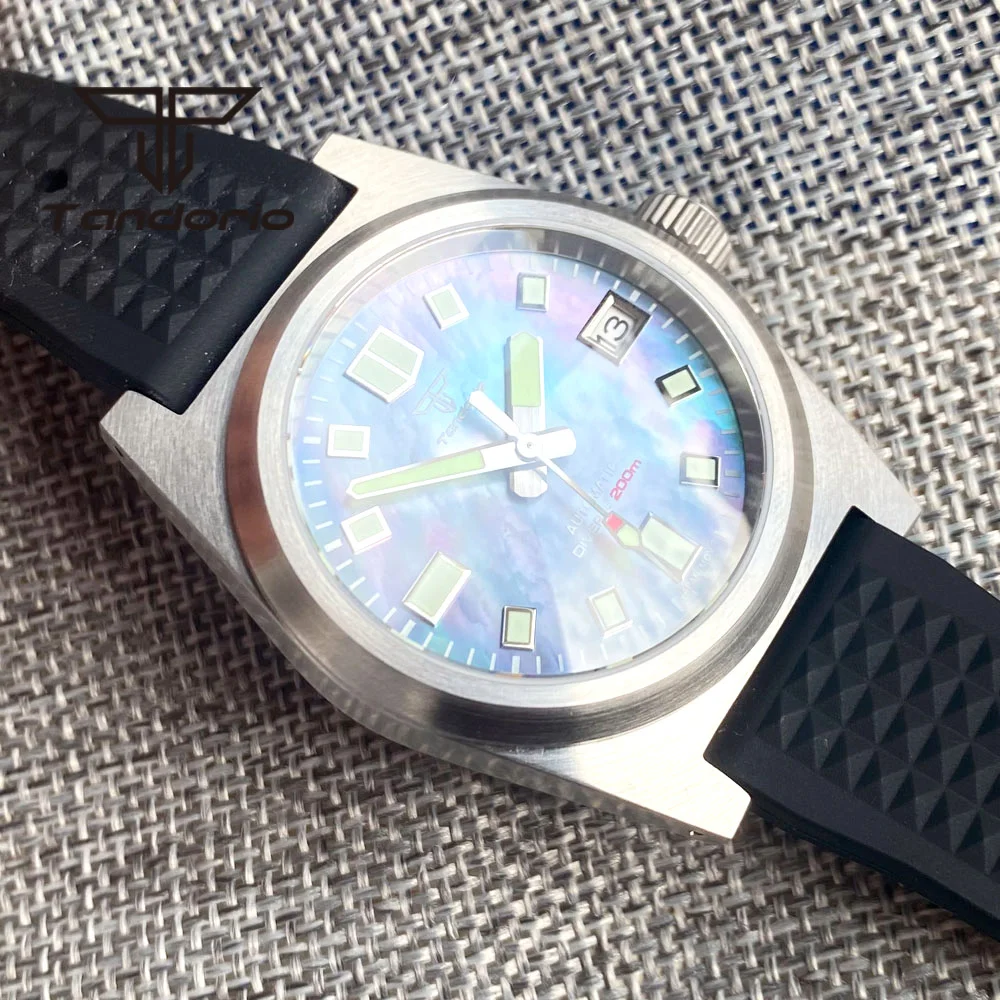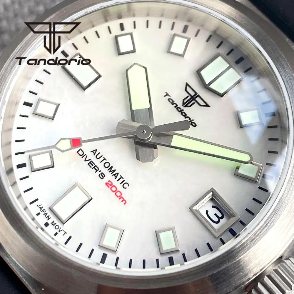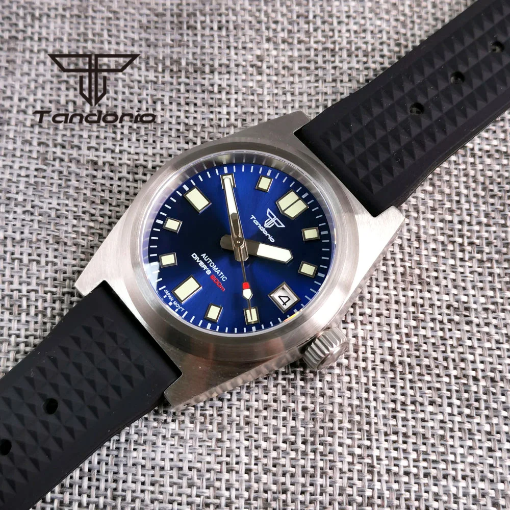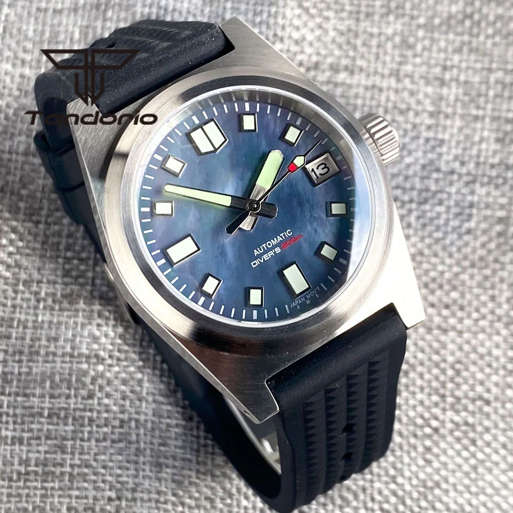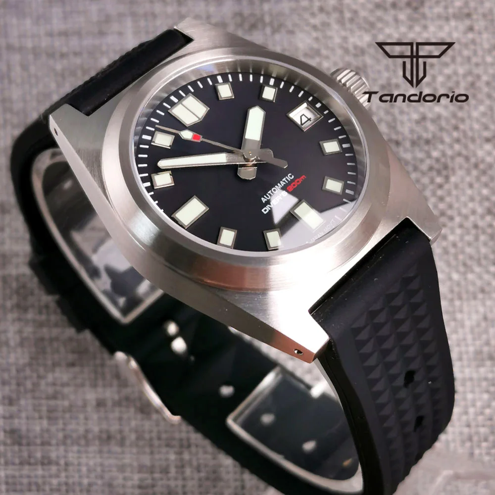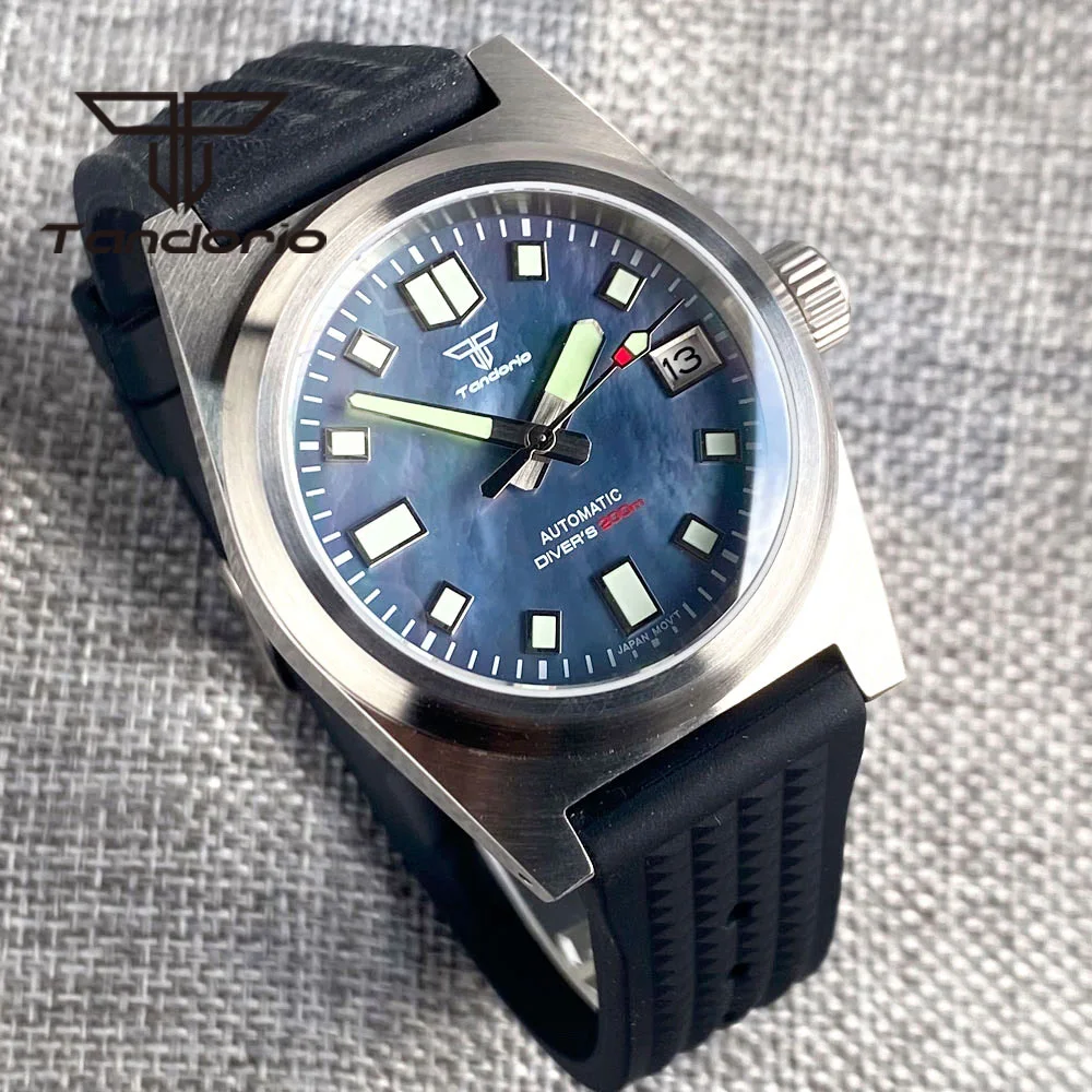 Color: Red - Tandorio Black/Blue/Green Sunburst Dial NH35A 38mm Automatic Men's Watch 200M Brushed Case AR Sapphire Crystal Rubber Strap