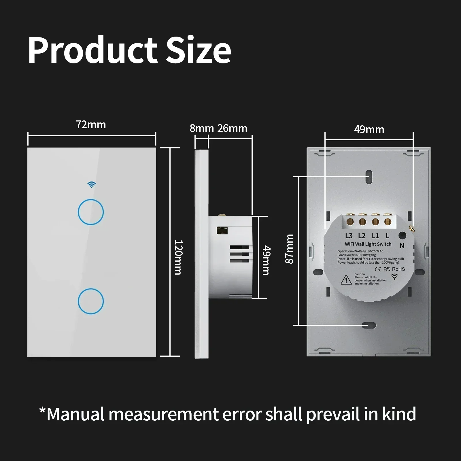 Rated Load: 5-600W/Gang