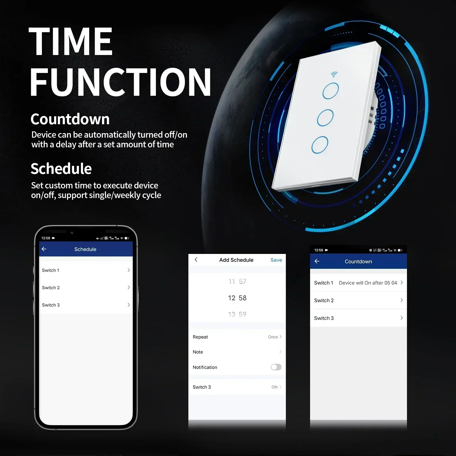 5.Support voice speaker control:The switch is compatible with Alexa and Google Home Assistant, allowing you to use the voice control smart switch to turn on/off.