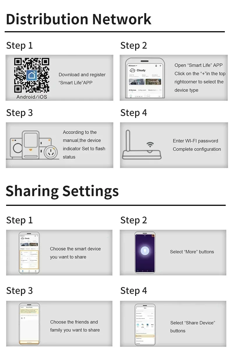 network compatible with iOS and Android operating system with SmartLife and Tuya
