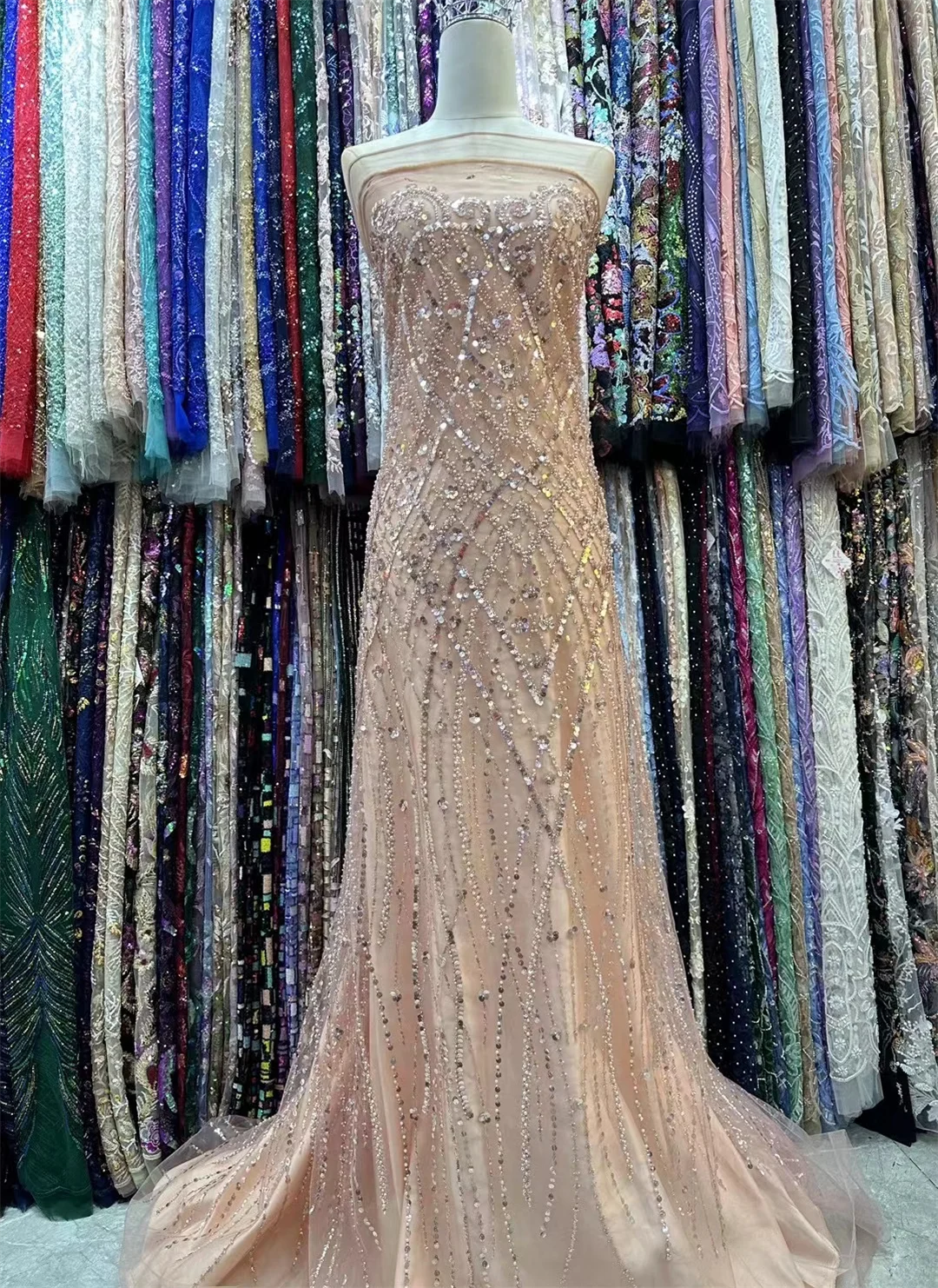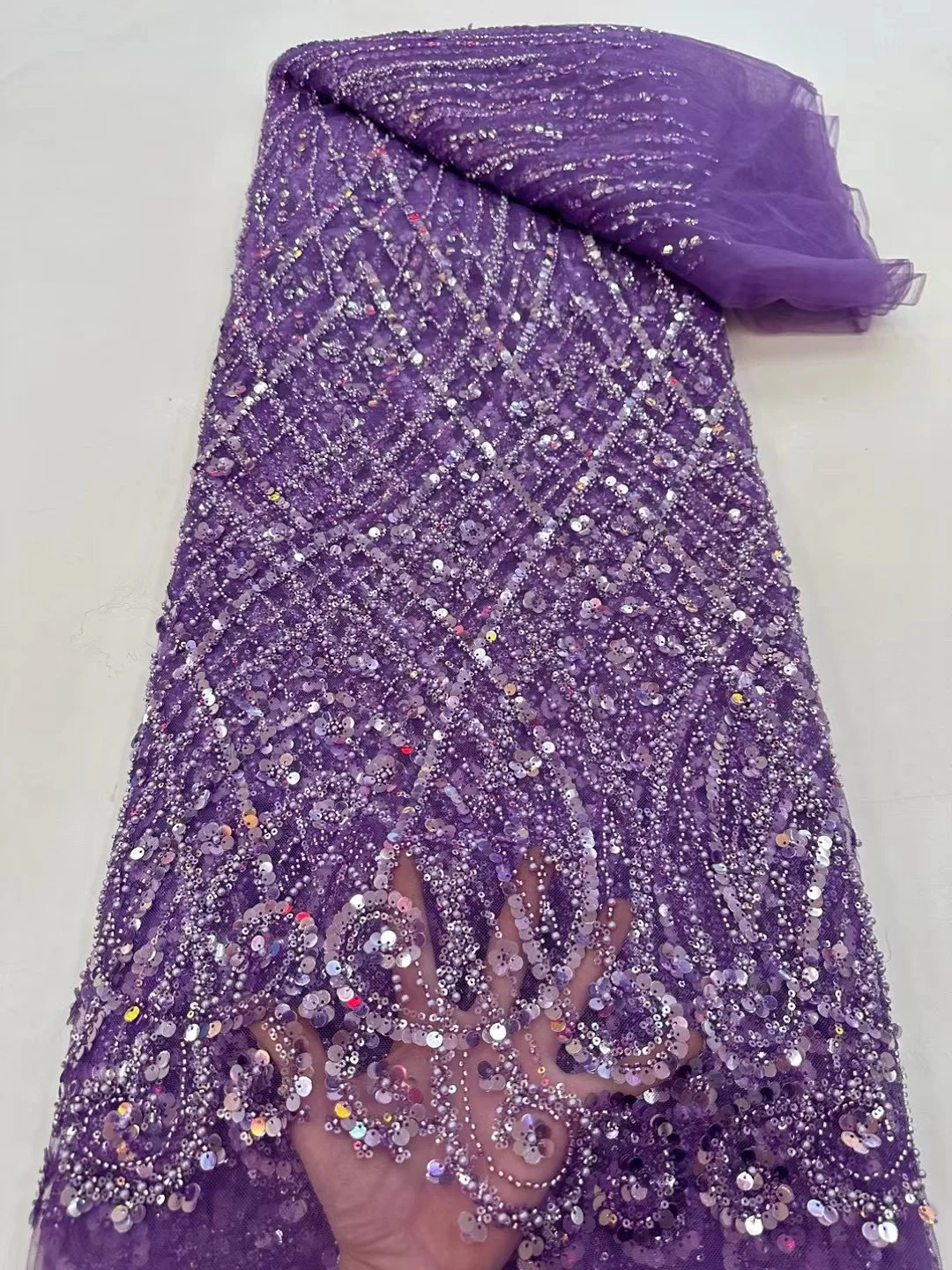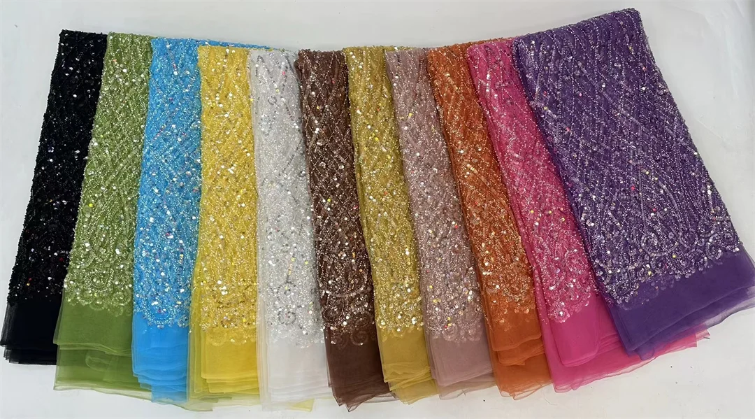 Ni Ai African Sequins Beaded Groom Lace Fabric High Quality French Tulle Lace Fabric 2025 Embroidery Nigerian Lace Fabrics