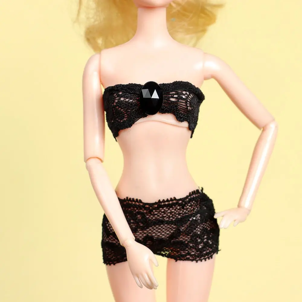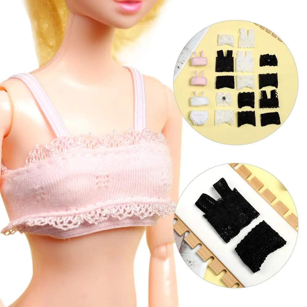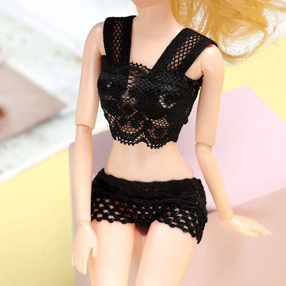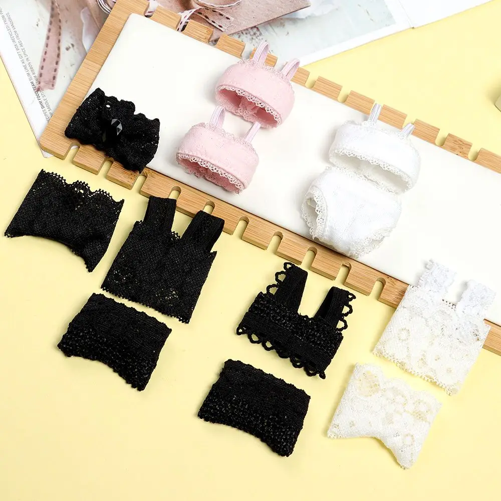 Color: Red Wine - 1Set Soft Lace Underwear Bra Briefs For 30CM Doll 1/6 Knickers For Blythe 1/6 BJD Dolls Top Underpant For Dollhouse Kids Toy
