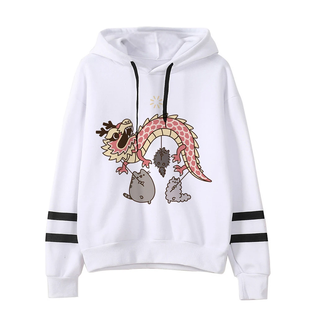 Color: RHODO, Size: L - Women Ullzang Cute Cat Funny Cartoon Sweatshirt Pusheen Cat Kawaii Harajuku Korean Style Hoodies Graphic Fashion Hoody Female