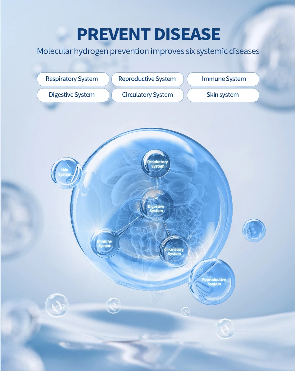 Anti-Aging: Hydrogen gas is believed to have a role in combating the aging process by reducing oxidative damage and cellular aging, helping to maintain a youthful and vital body.