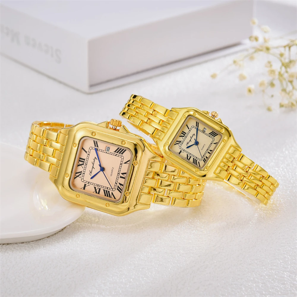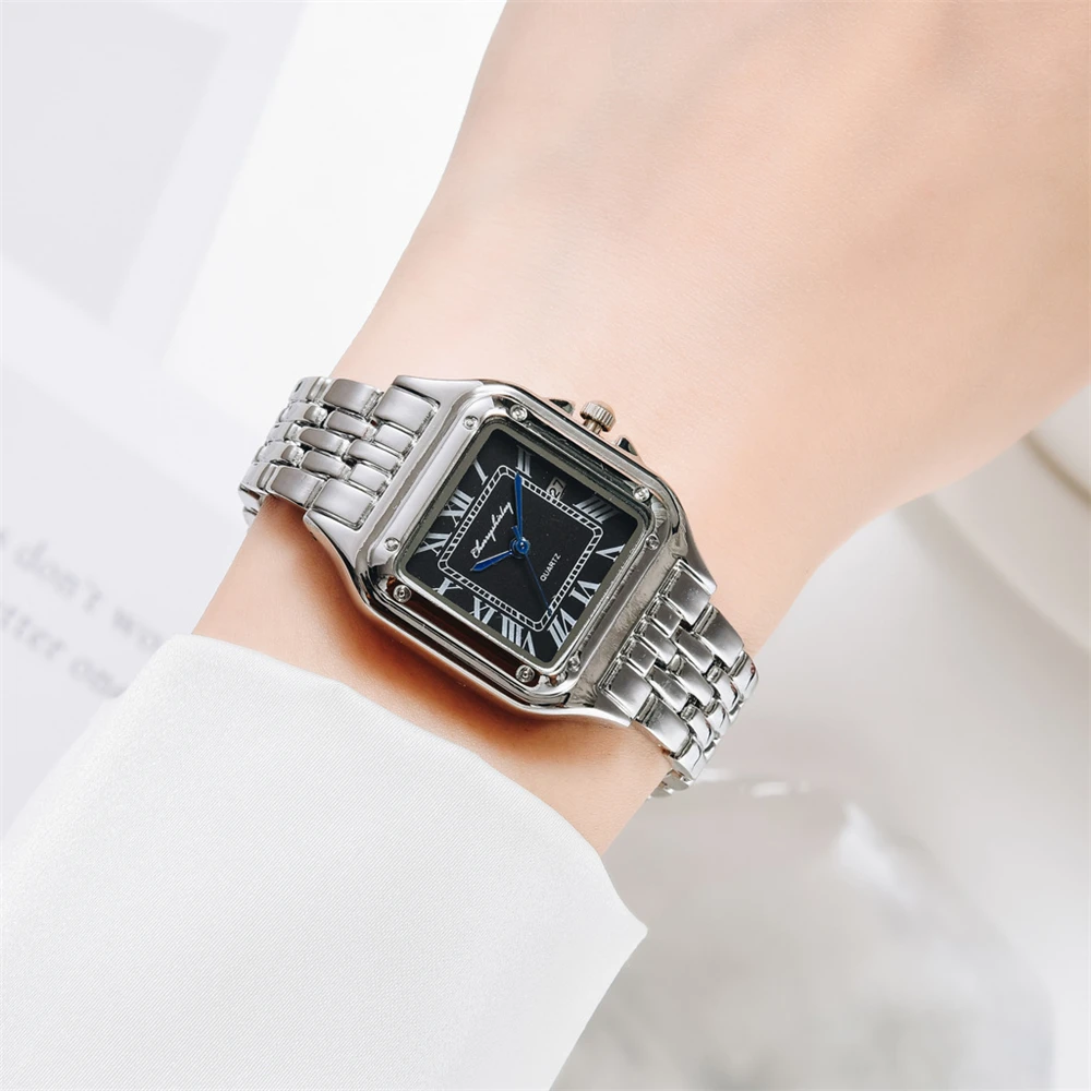 Luxury Branded Women Watches 2022 Simple Square Roman Calendar Women Quartz Watch Fashion Stainless Steel Strap Ladies Clock