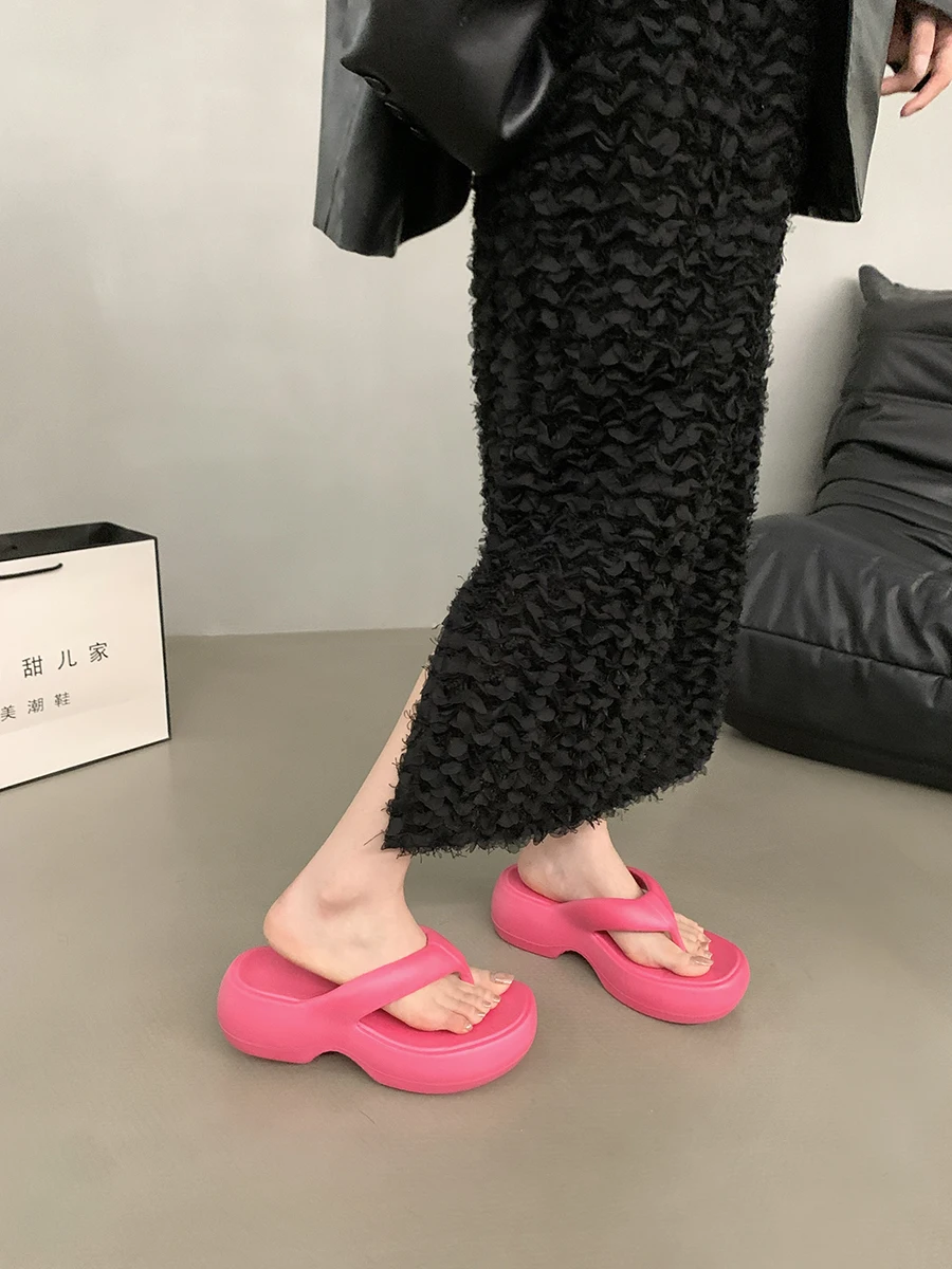 Color: Rosy Red, Shoe Size: 39-40 - Casual Round Square Toe Women Flip-flops Innovative Desgin Soft-soled Outdoor Slippers Non-slip Lightweight Women's Sandals