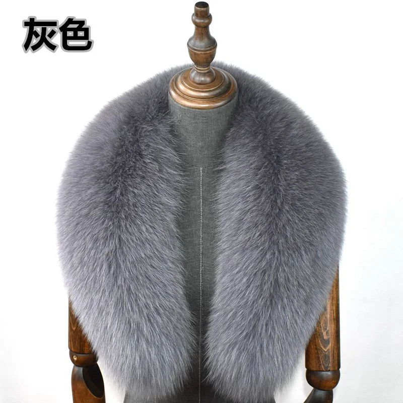 Fox Fur Collar 100% Real Fox Fur Scarf Straight Collar Natural Fur Gray Collar Large Size Neck Warmer Fur Scarf Shawls