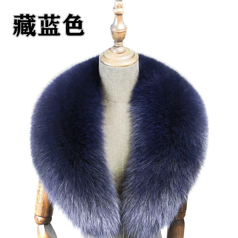 Color: ROYAL BLUE, Size: S - Fox Fur Collar 100% Real Fox Fur Scarf Straight Collar Natural Fur Gray Collar Large Size Neck Warmer Fur Scarf Shawls