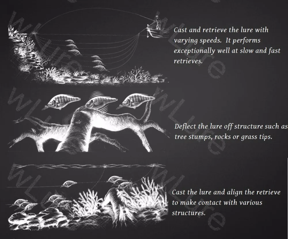 Overall, this fishing lure seems to be a well-designed and effective option for anglers targeting fish that are attracted to a slow floating, shallow diving lure. It may be particularly useful in situations where fish are feeding in shallower water or where a slower, more subtle presentation is required to entice a bite.