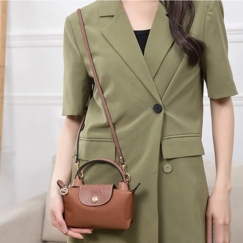 Color: Silver - 1 Set Bag Strap For Longchamp Mini Punch-free Genuine Leather Shoulder Strap Set Transformation Crossbody Strap Bag Accessories