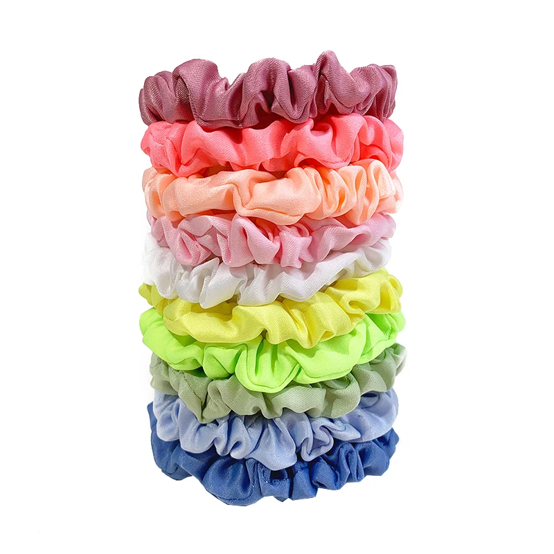Color: Silver - 10pcs/pack Women Colorful Satin Silk Scrunchies Elastic Hair Bands Solid Color Dot Hair Ties Ponytail Holder Hair Accessories