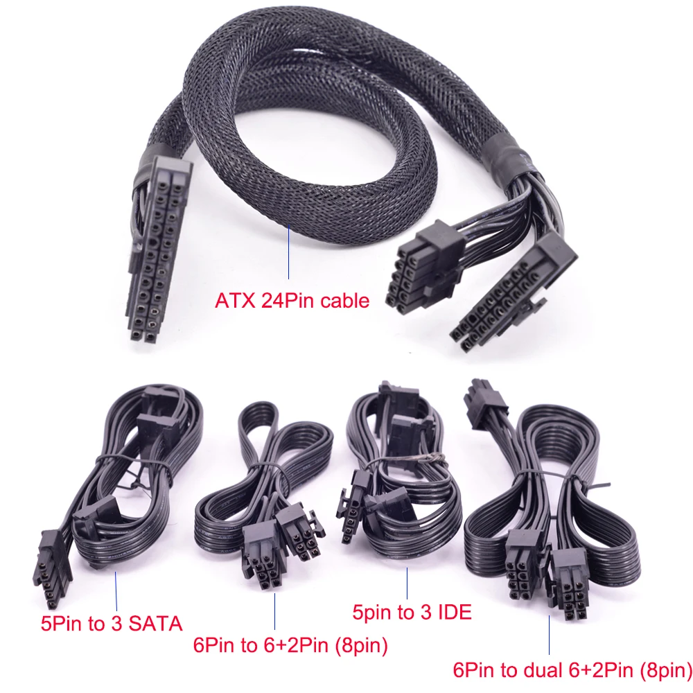 6Pin to 6Pin &Â 6+2Pin (8Pin)Â cable:Â 60+20cm