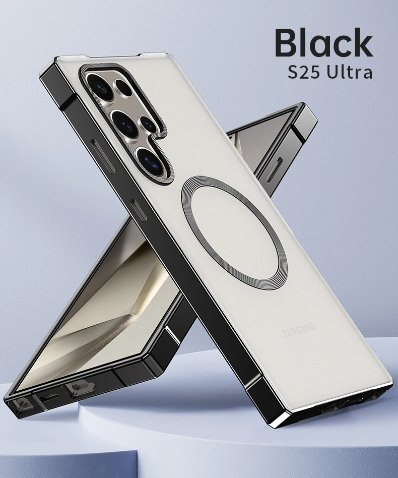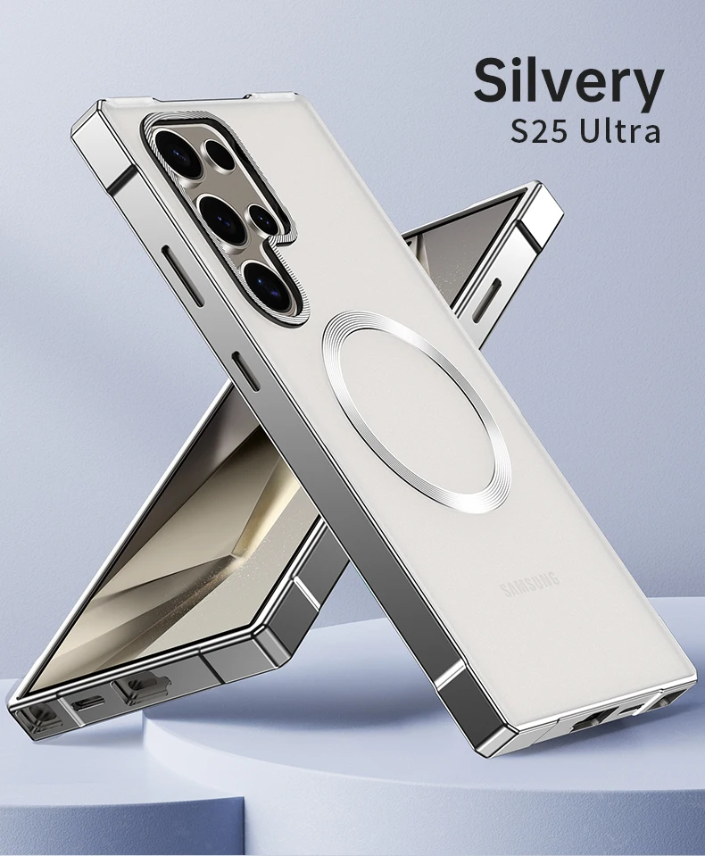 Color: Silver, Compatibility by Model: Galaxy S25 Ultra - Push Pull Matte PC Hard Shockproof Case For Samsung Galaxy S25 S24 Ultra Magnetic Wireless Charging Bumper Back Cover