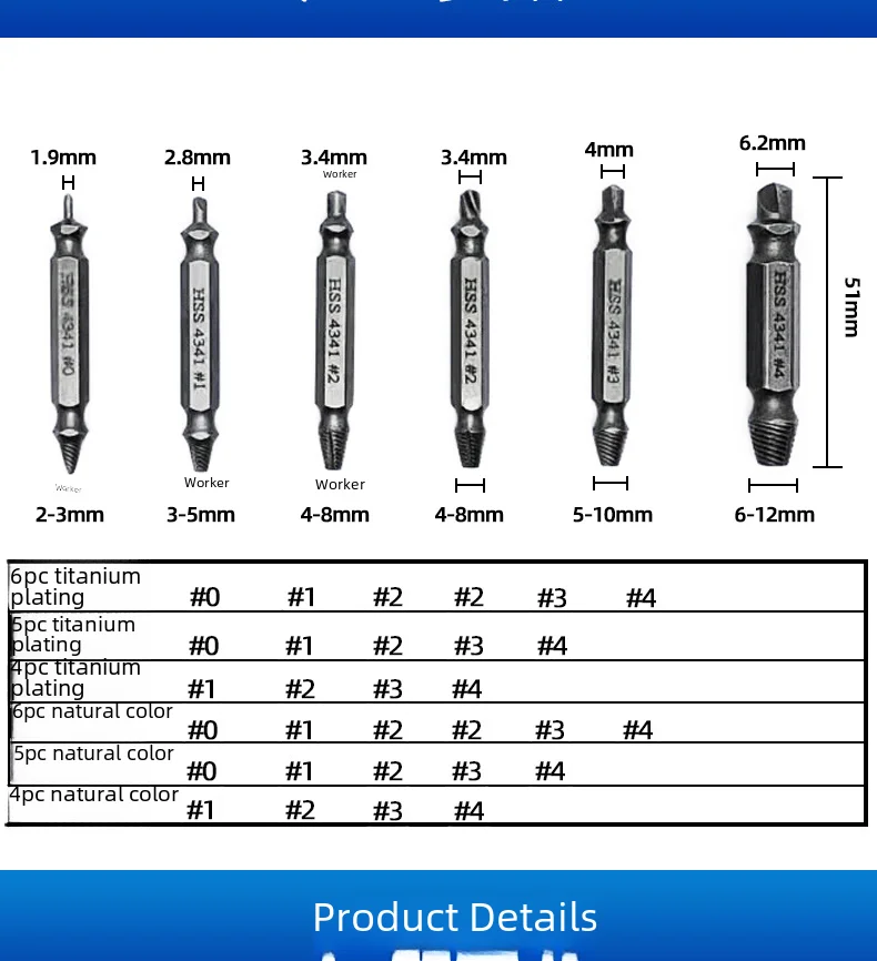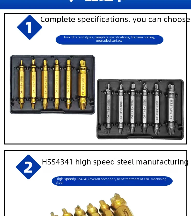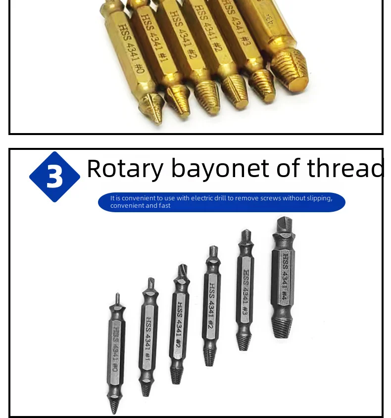 • High-Speed Steel Material :Crafted from high-speed steel 4341, this cross-border screw extractor ensures durability and high efficiency in broken wire removal.