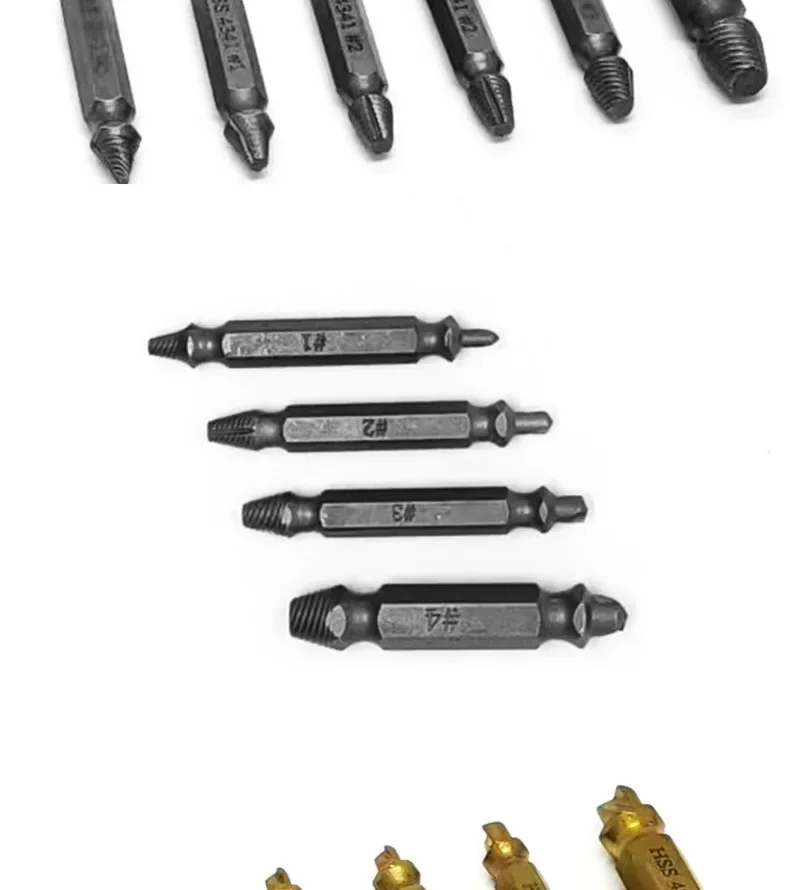 Color: Silver - Double-headed High-speed Steel 4341 Tap Extractor Slip-tooth Broken Screw Reverse-tooth Snapped Wire Removal Tool Set