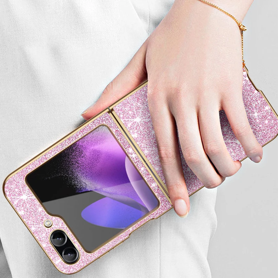 Color: Silver, Material: ABS - sparkling Stylish phone case Samsung Galaxy Z Flip 5 4 5G protective cover Cell phone case for women
