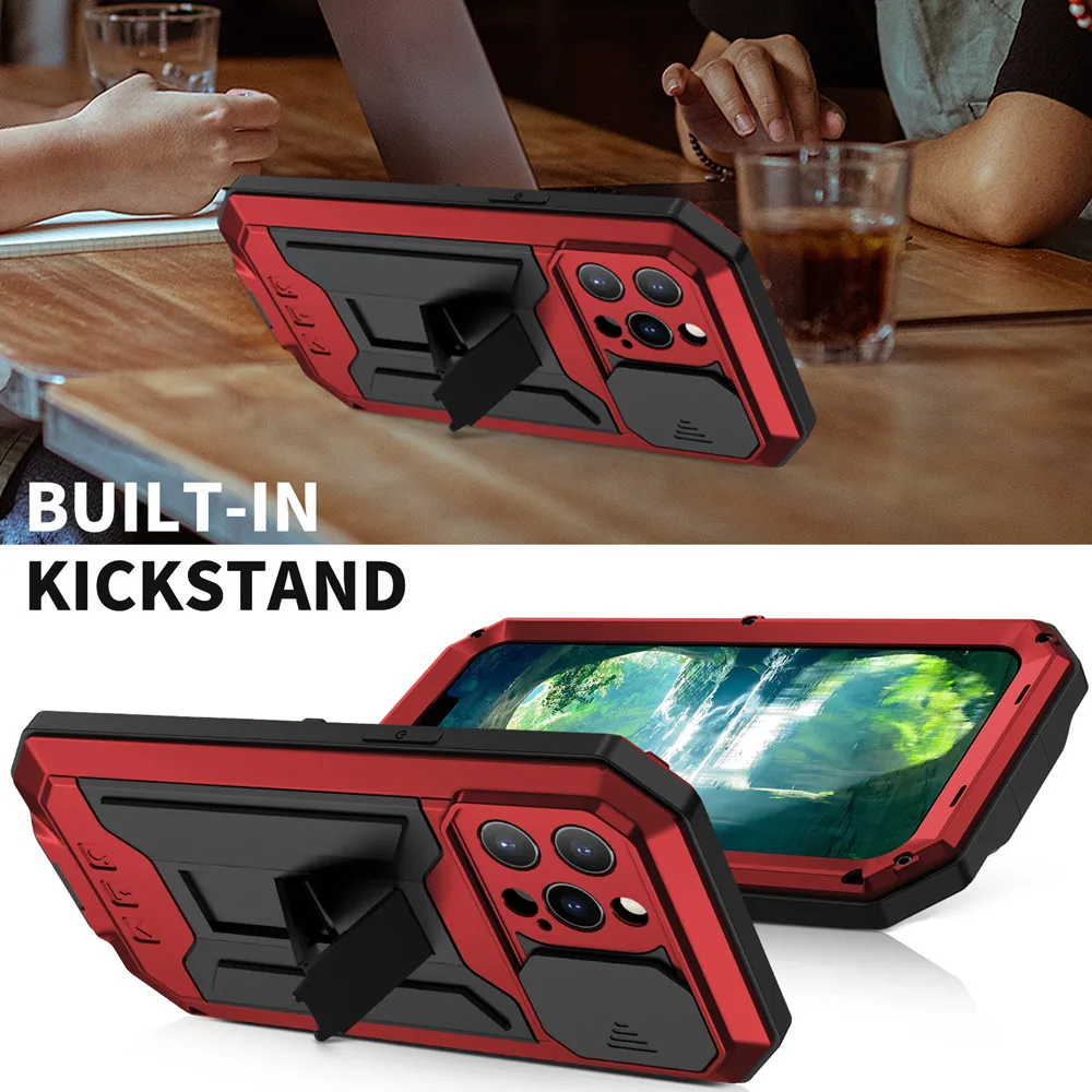 Color: Silver, Material: nylon - Heavy Duty Metal Aluminum Case For iPhone 14 13 15 Pro Max Military Grade Shockproof Bumpers Armor Kickstand Camera Slider Cases