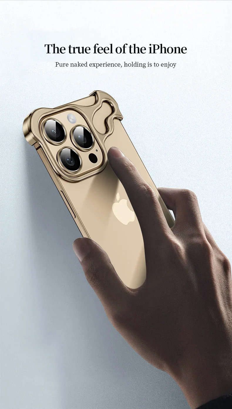 Aluminum Metal Rimless Phone Case for iPhone 16 15 14 Plus 13 12 Pro Max Lens Protective Film Hollow Logo Cooling Accessory Case