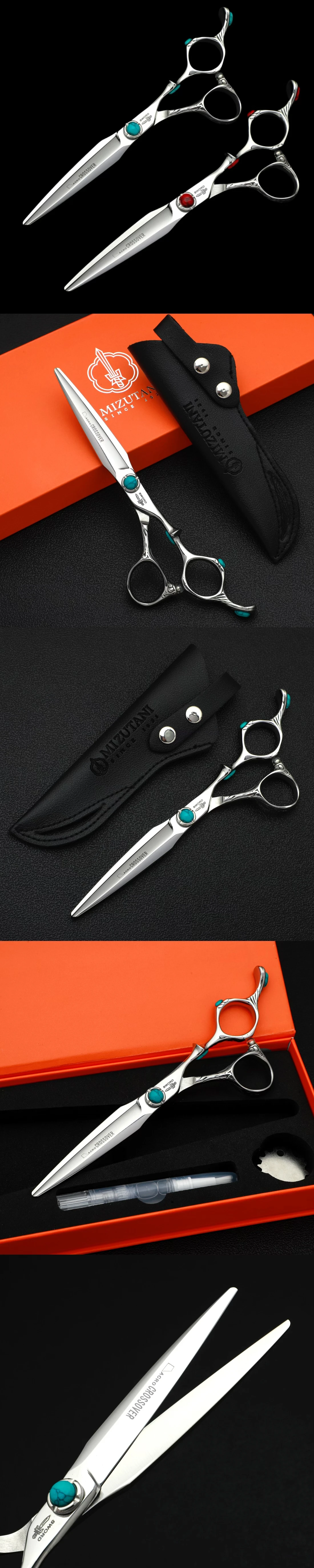 Color: Silver - MIZUTANI professional hairdressing scissors thinning shears 6-6.5-7 inch barber scissors VG10 steel Hair cutting machine