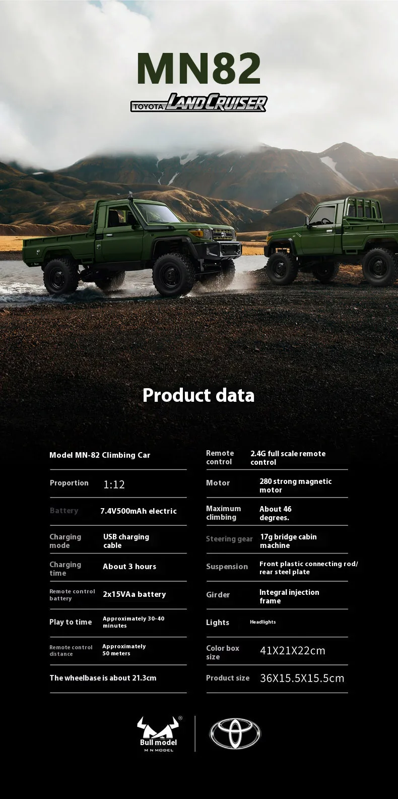 Product Information Product name:1:12 Green Retro Rc Car With LED Lights Professional 4WD Pickup Truck Model Toys Product size: 36*15*17.5cm Color: Green Body battery: 7.4v 1200MAH Motor: 280 motor Steering gear: 17g waterproof steering gear Function: Forward, backward, left. Turn right. Proportional remote control. With drag brake function. Remote control to control the lights Light set: front headlights, turn headlights and back headlights ![]()