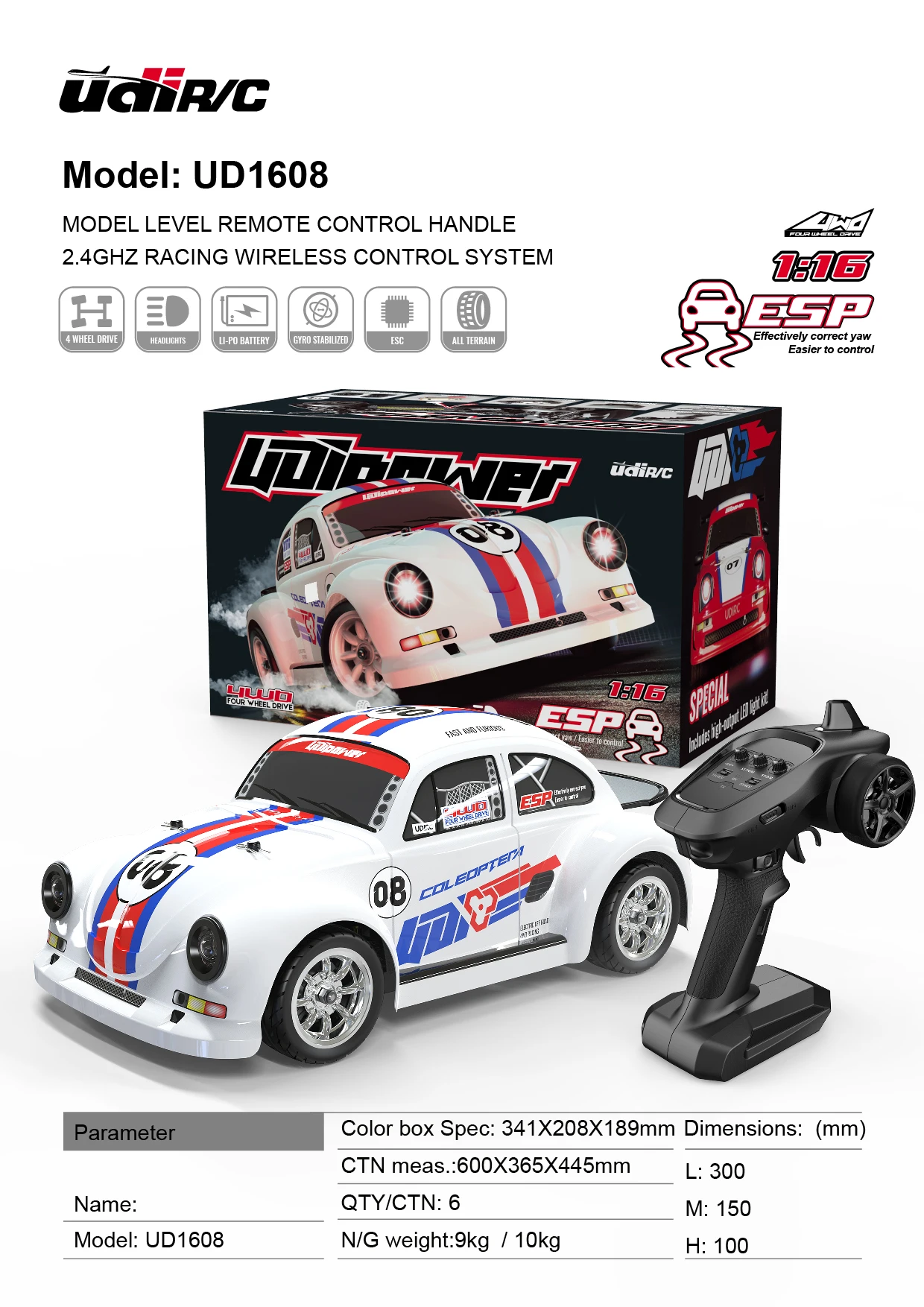 UDIRC RC Racing Drift Car UD1601 UD1602 UD1603 UD1604 UD1607 UD1608 Pro 1/16 RC Car High Speed 2.4G Brushless 4WD Drift Remote Control Racing Car toys For Boys