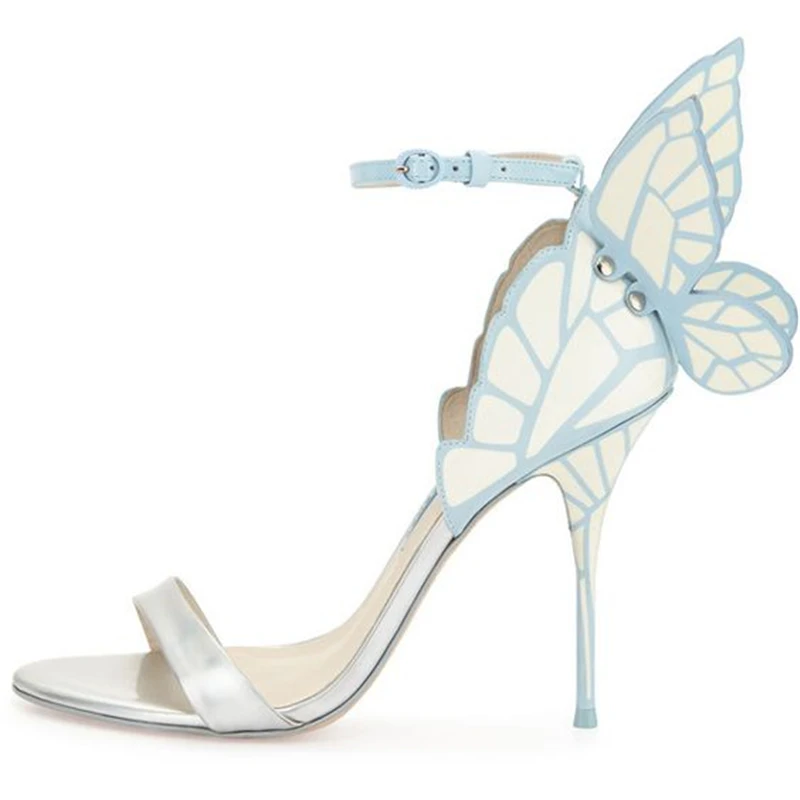 Color: Silver, Shoe Size: 6 - Women Summer Sandals Fashion Embroidered Satin Butterfly High Heeled Footwear Adjustable Ankle Strap Shoes Women high heels