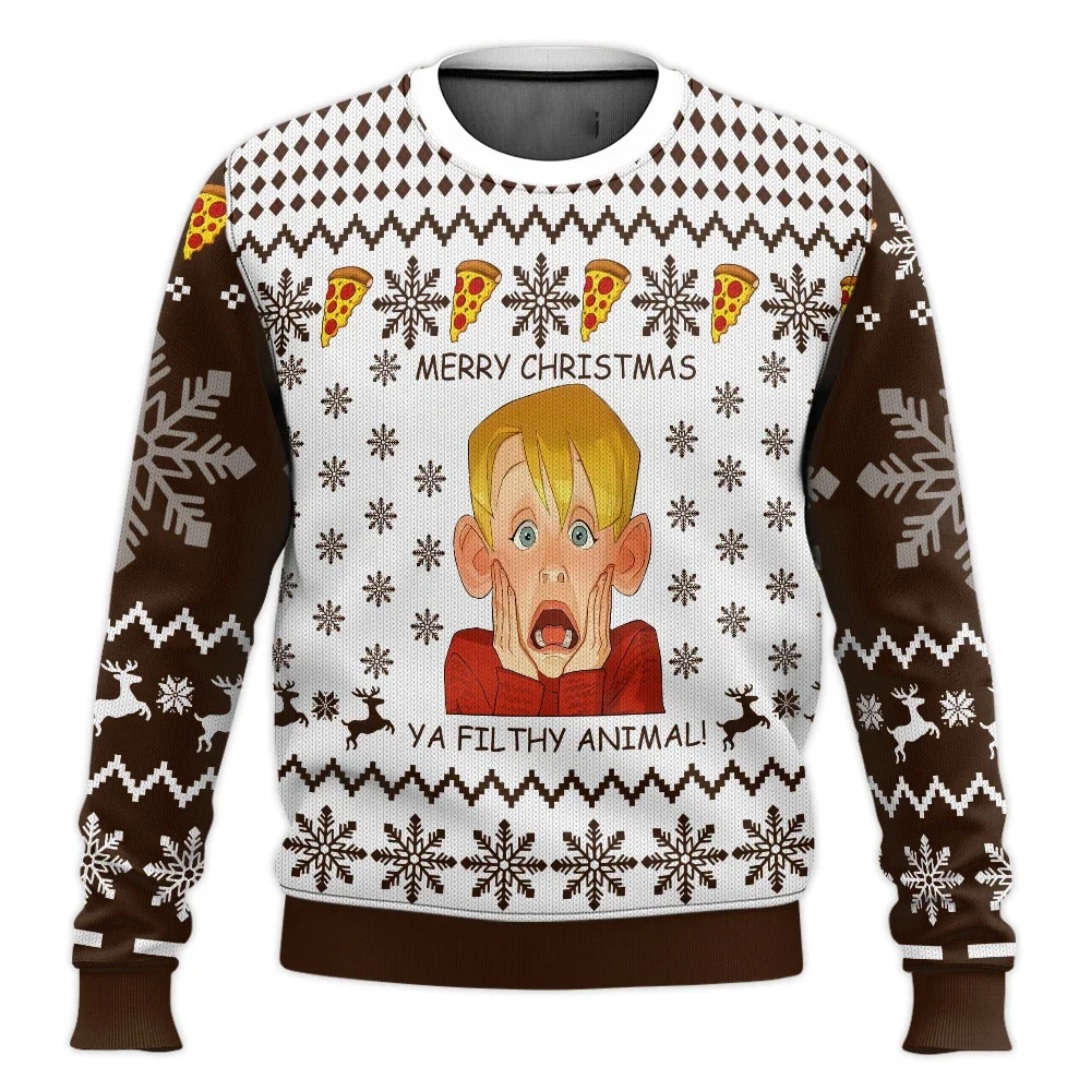 Color: Silver, Size: M, Ships From: CHINA - Merry Christmas alone at home Ugly Christmas sweater cartoon animation Men's pullover 2026 fashionable couple shirts Sweatshirt