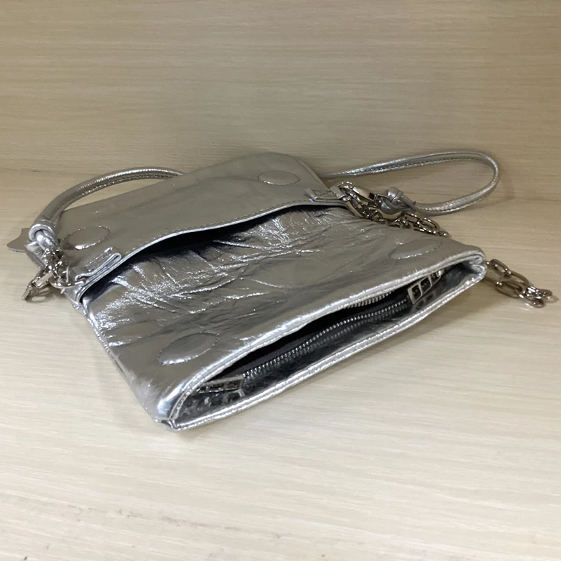 Color: Silver, Size: S, Ships From: CHINA - Women's Handbag Casual Simple and Fashionable Baidu Women's Genuine Leather Shoulder Crossbody Bag Mobile report