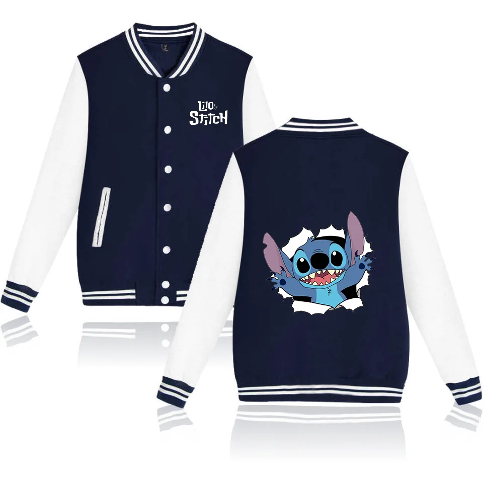 Color: Silver, Size: XXS - Lilo Stitch Baseball Jacket Men Women Hip Hop Harajuku Jackets Streetwear Kids Boys Girls Loose College Coats