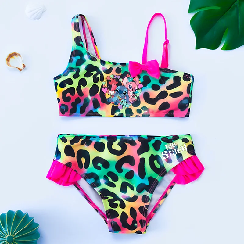 Color: Silver, Size: XXS - Lilo Stitch Gilrs Bow Bikini Set Trendy Two-Piece Swimsuits for Summer Stylish Beachwear Pool Fashion Bathing Suits 3-12Y
