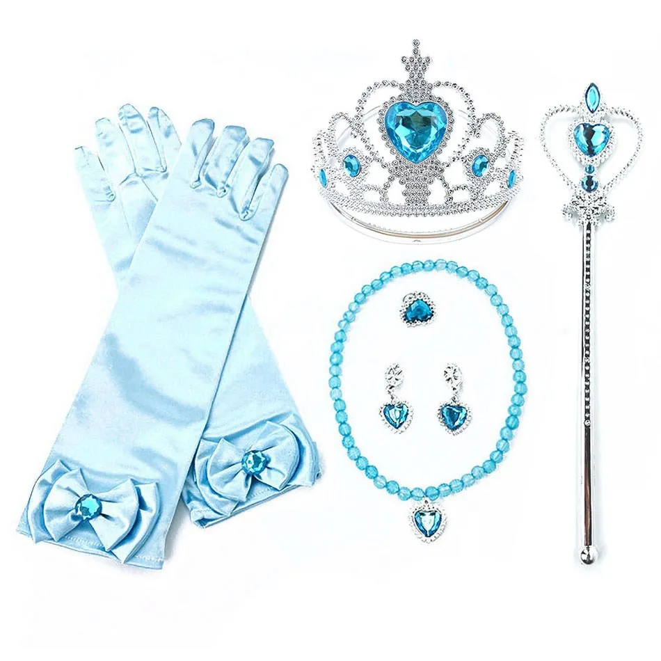 Color: Sky blue - Girls Princess Accessories Kids Party Costume Aurora Belle Sofia Snow Queen Elsa Anna Magic Wand Crown Tiara Gloves Wig Braid