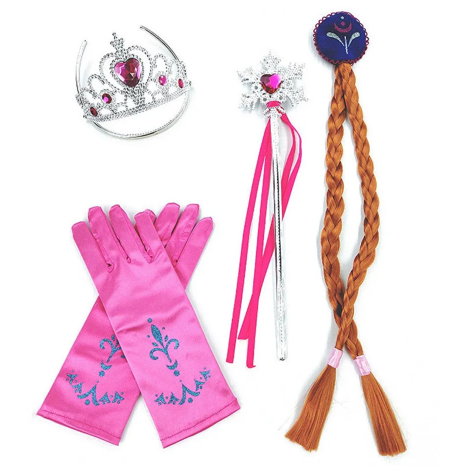 Name:Â Girls Elsa Anna Accessories Set Kids Party Costume Aurora Belle Sofia Snow Queen Snow Flake Magic Wand Tiara Gloves Wig Braid