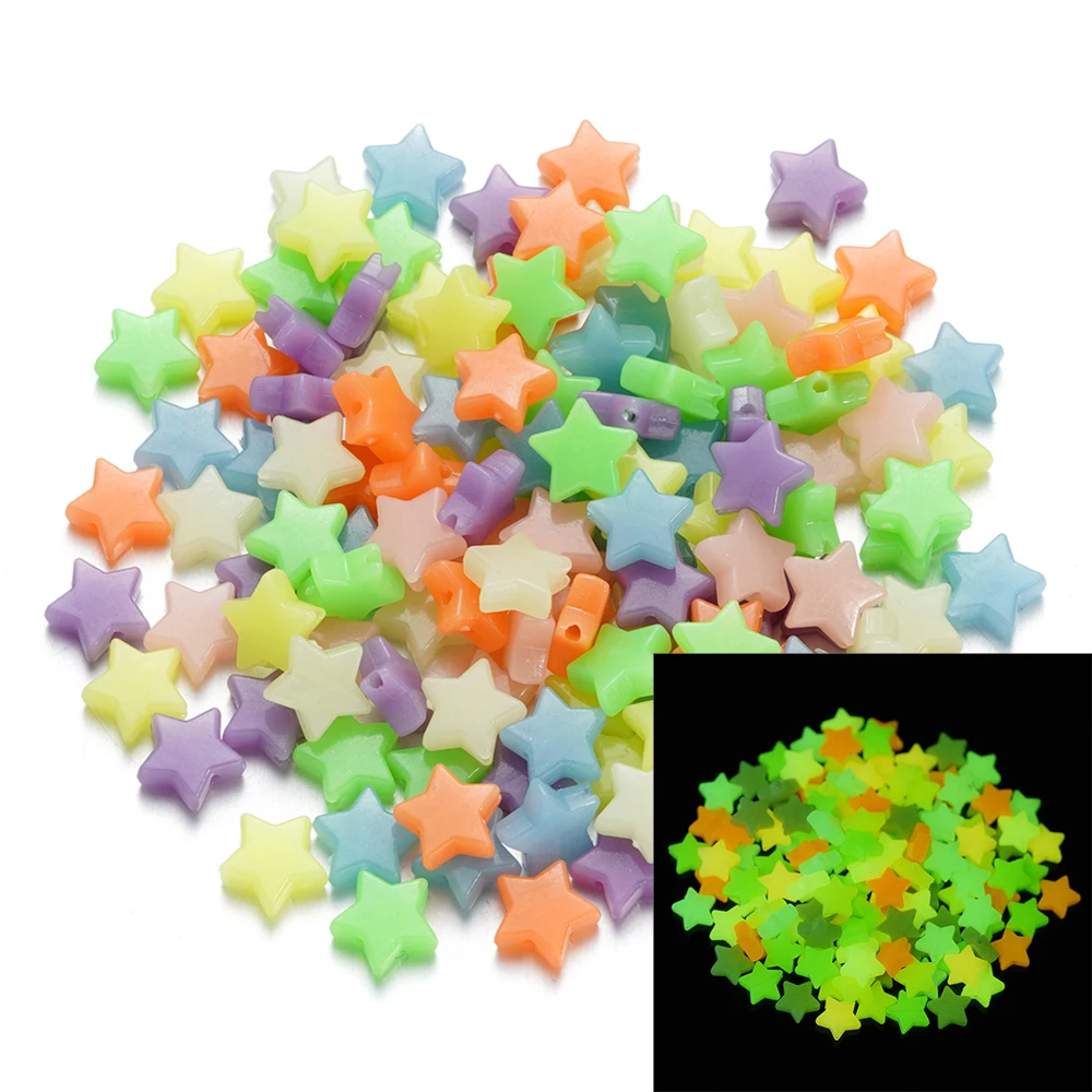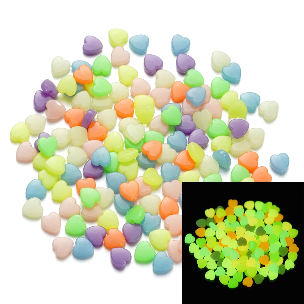 50Pcs Luminous Star Beads Heart Shape Acrylic Beads Loose Spacer Beads for Jewelry Making DIY Bracelet Necklace Accessories