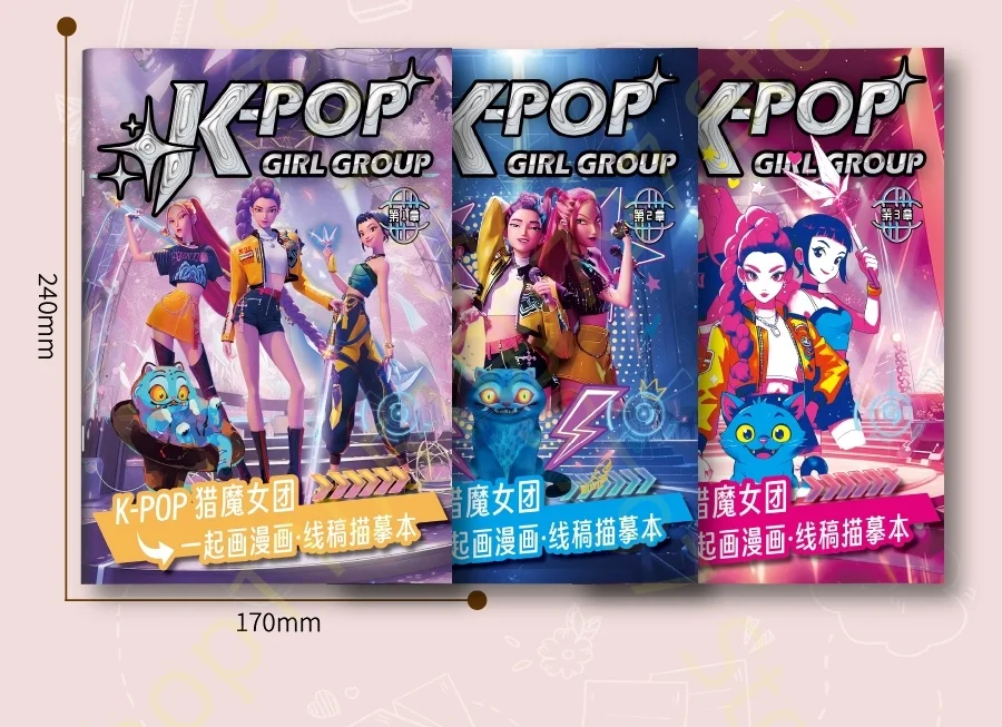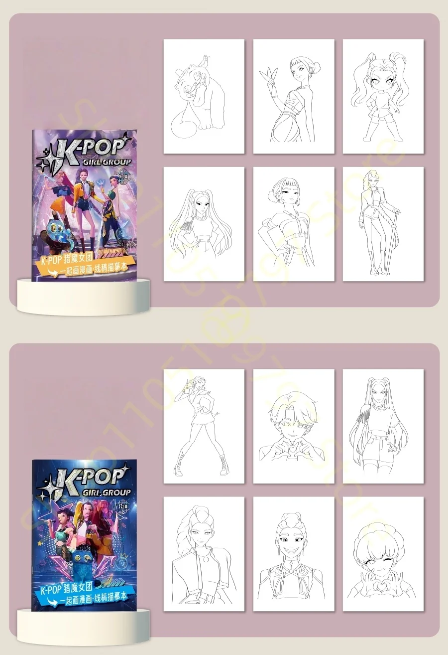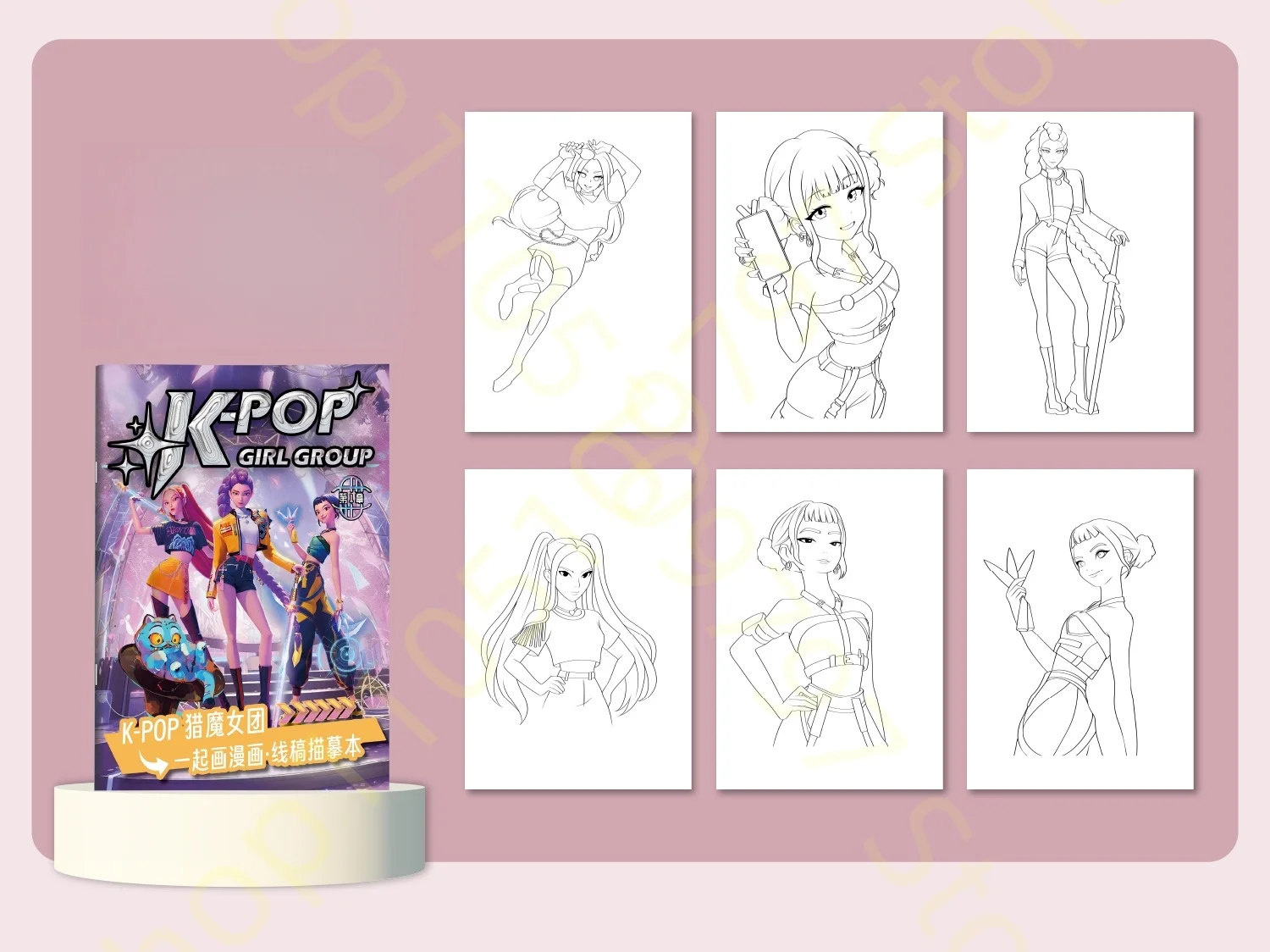 Color: SKY BLUE - KPop Demon Hunter Coloring Books Anime Cartoon Line Drawing Children's Sketch Picture Book Kid's Birthday Gift / Christmas Gift