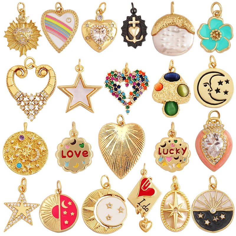 Color: Sky blue - Love Heart Shining Star Moon Mushroom Flower Charm Pendant,18K Gold Plated Colourful Zircon Necklace Bracelet Handmade Jewelry