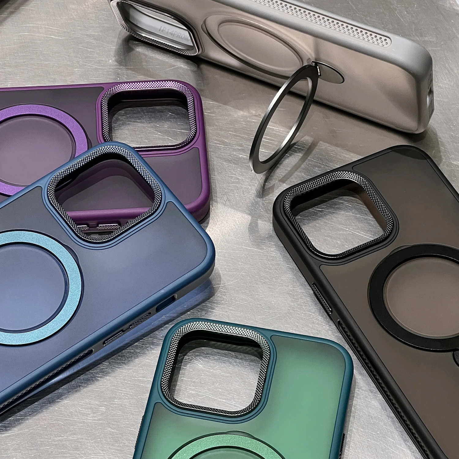 For iPhone 15 Pro Max 360° Rotation Magnetic Holder Stand Matte Phone Case For iPhone 11 12 13 14 15 Plus Heat Dissipation Cover