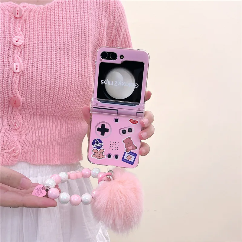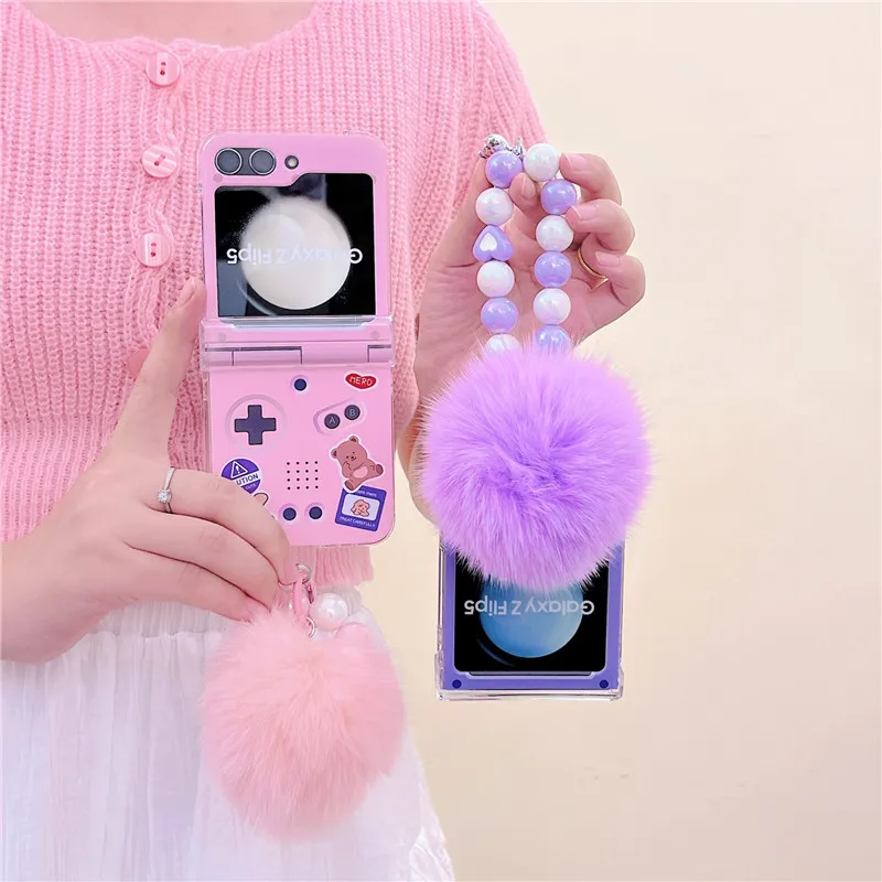 Cute Bracelet Phone Cases For Samsung Galaxy Z Flip 3 4 5 6 7 FE Hard Plastic PC Plush Case For Samsung Z Flip5 ZFlip5
