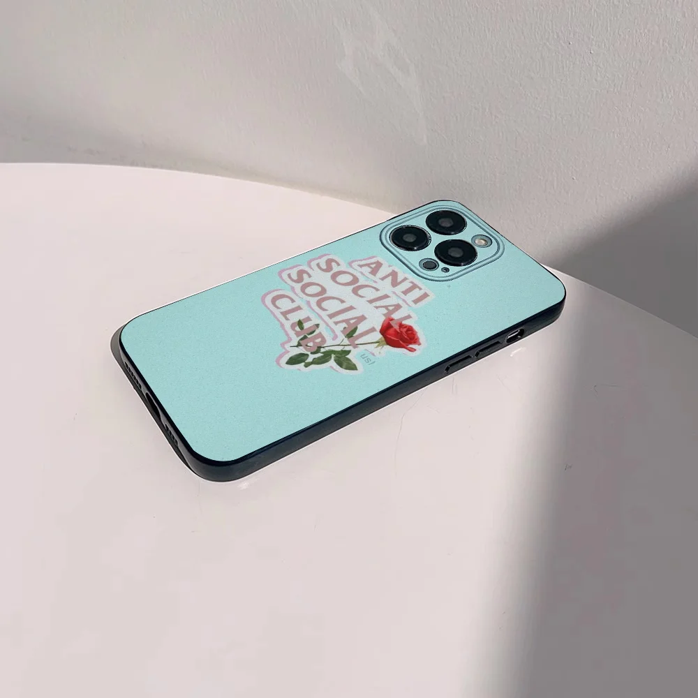 Color: SKY BLUE, Material: Nylon - Anti Social Social Club Phone Case For IPhone 16 15 14 13 Pro Max 11 12 Mini X Xs XR Se 2022 Black Silicone Cover