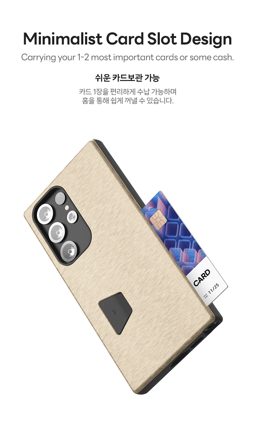 Minimalist Card Slot Design: carrying your 1-2 most important cards or some cash.