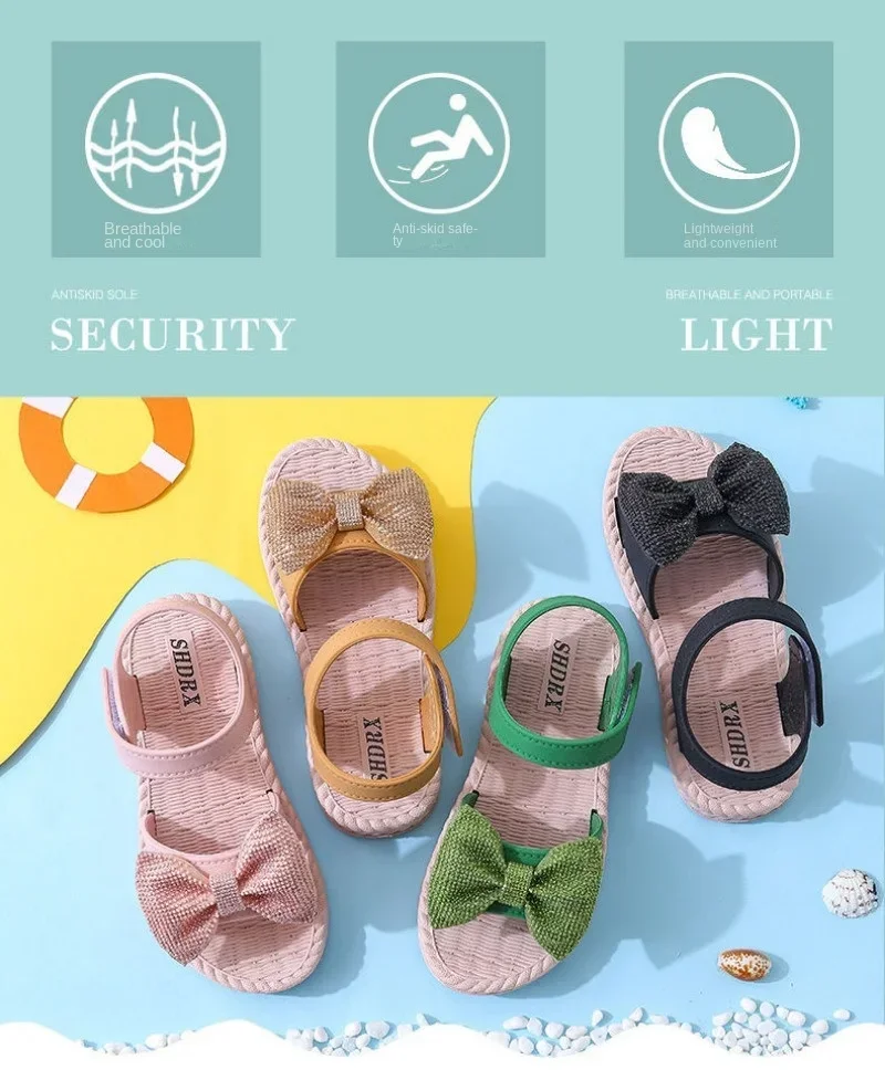 Color: SKY BLUE, Shoe Size: 5 - Girls Sandals 2024 Summer Princess Children Sandals Bow Tie Girl Shoes Fashion Casual Non Slip Kids Beach Shoes