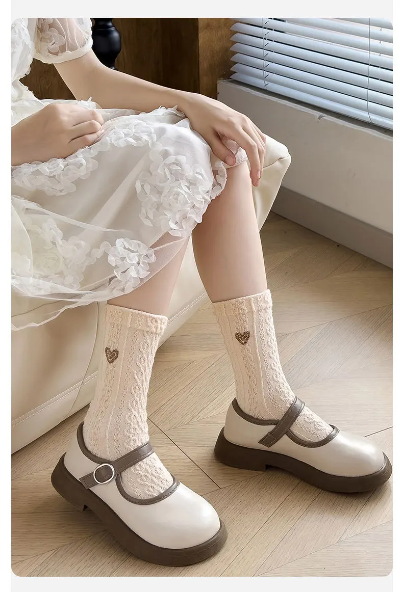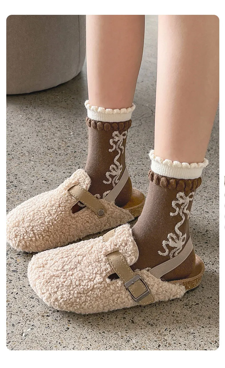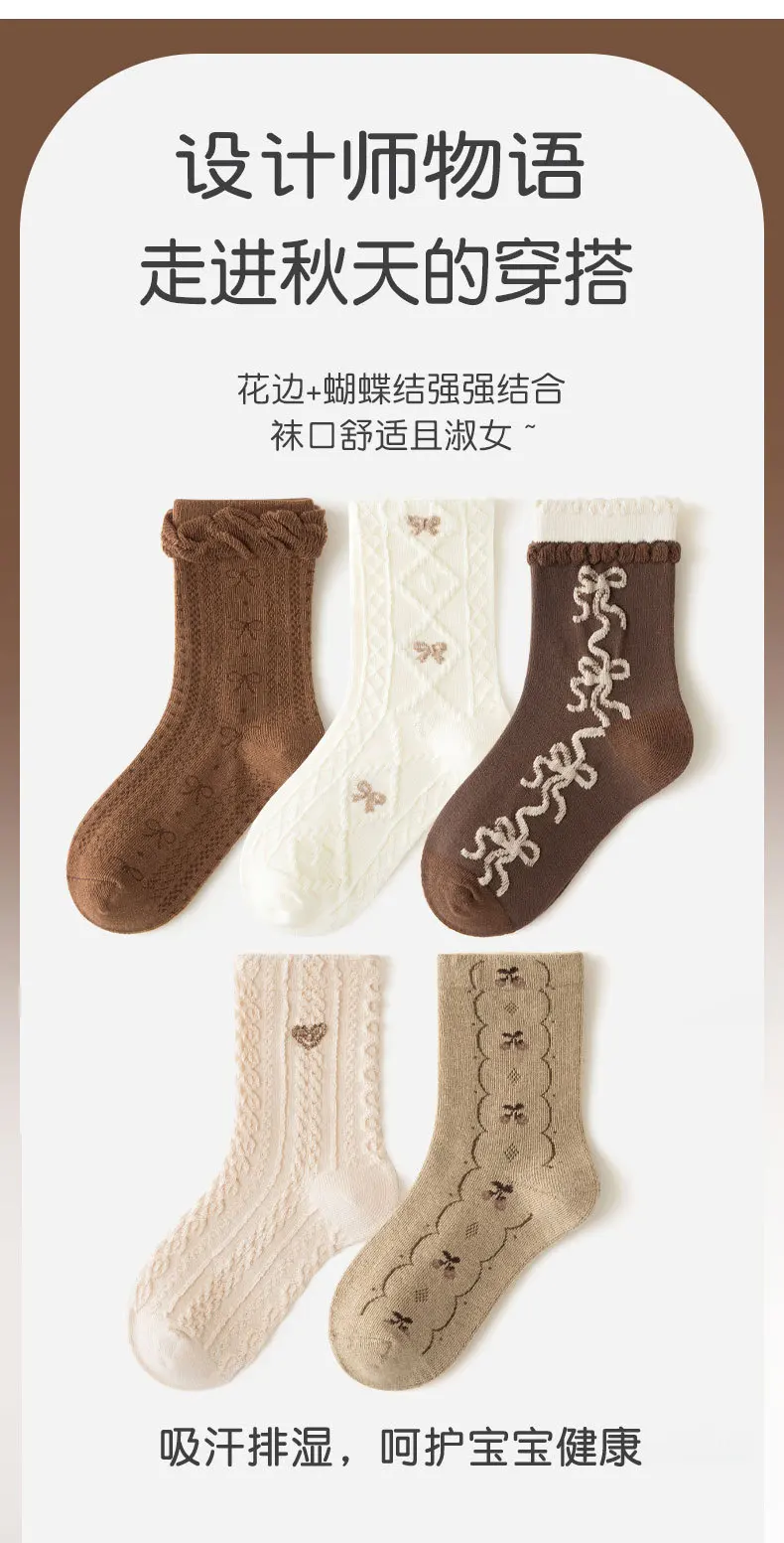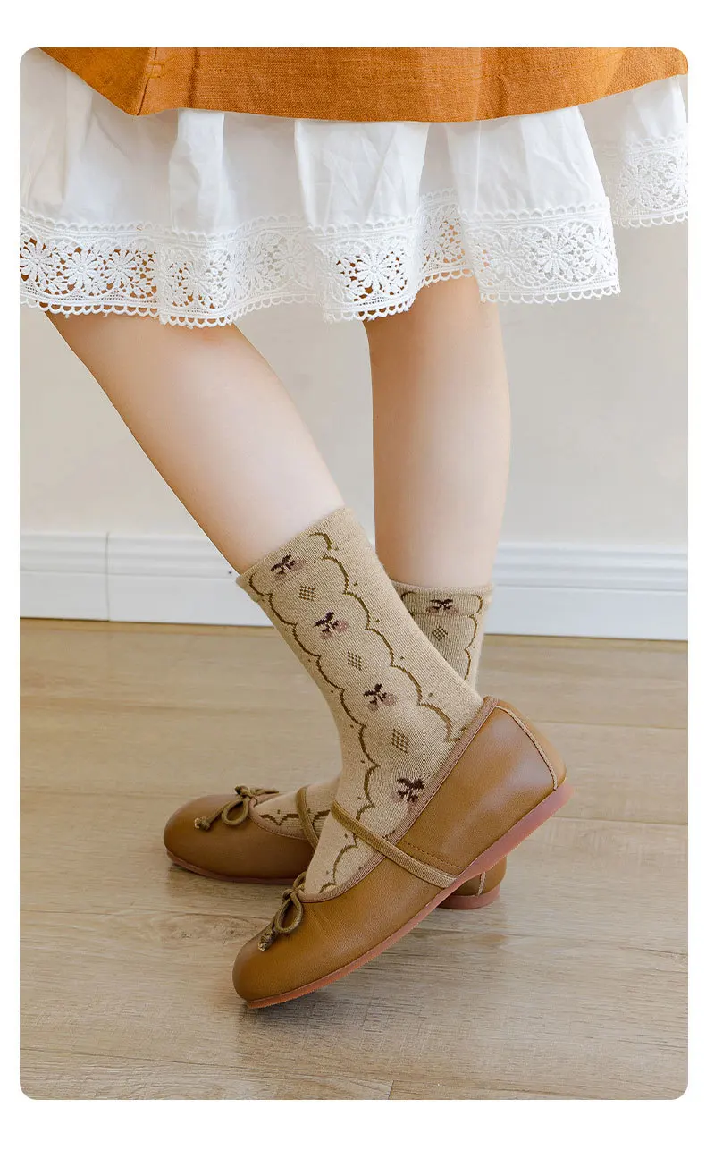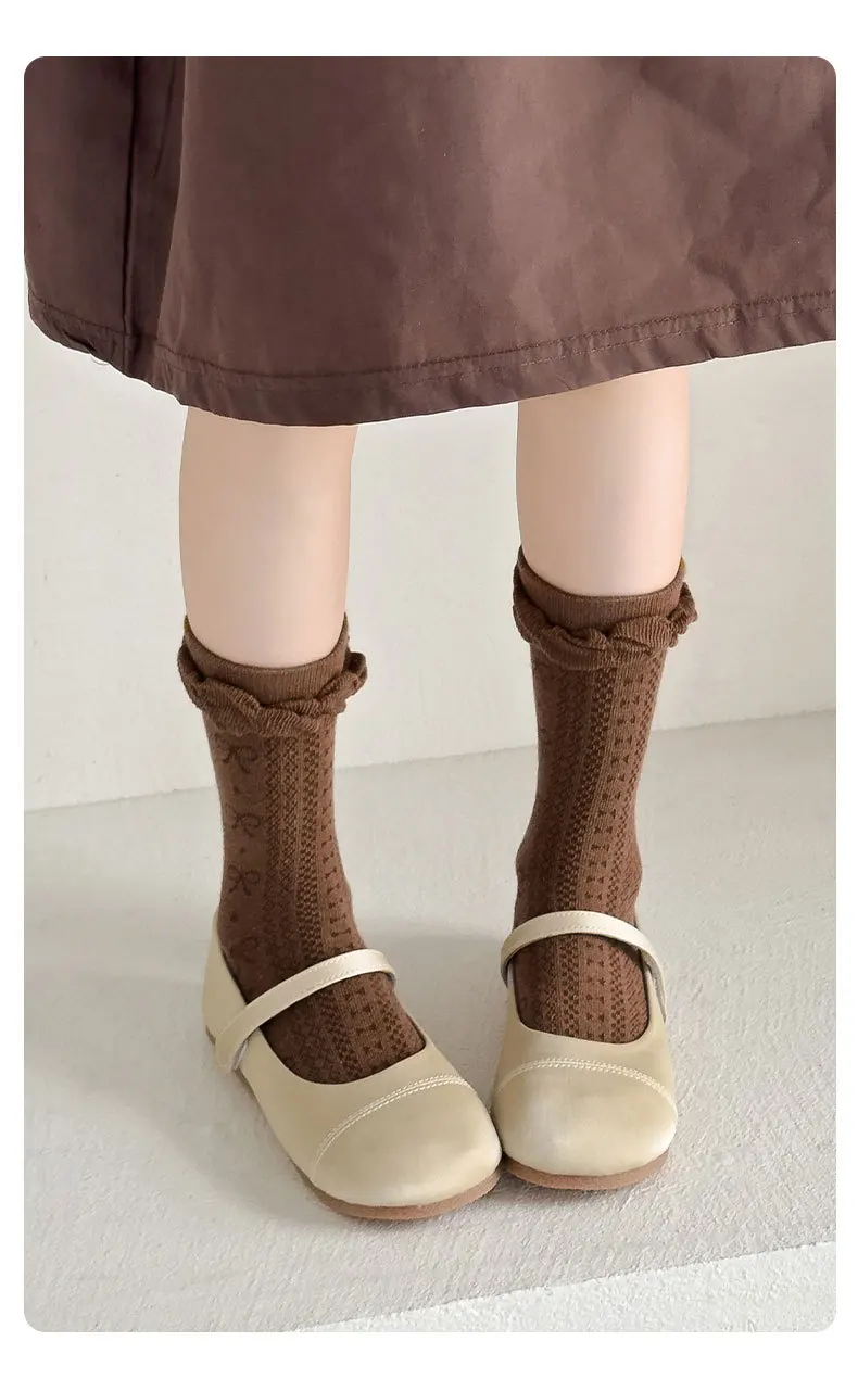 Color: SKY BLUE, Size: 10-12T - Girls Ruffle Socks Baby Mid Calf Socks Autumn Children's Socks Retro Maillard Style Cotton Socks