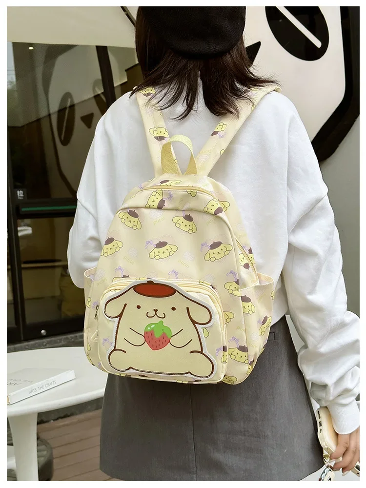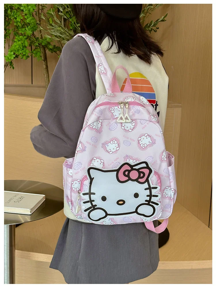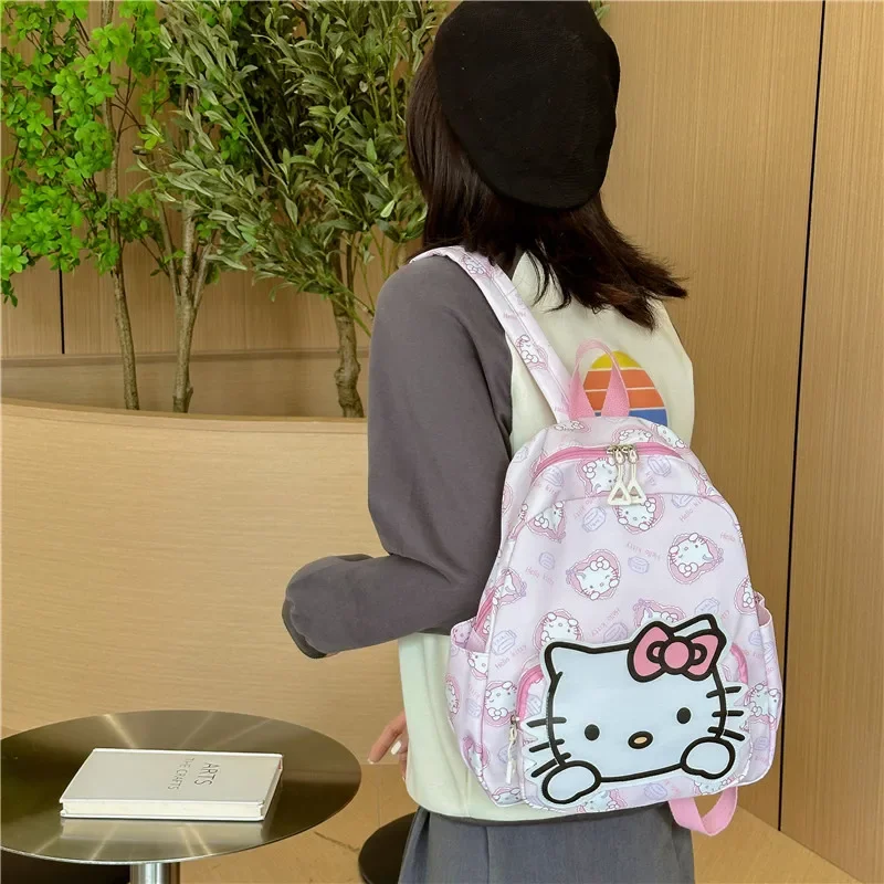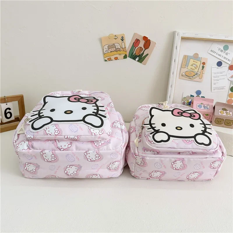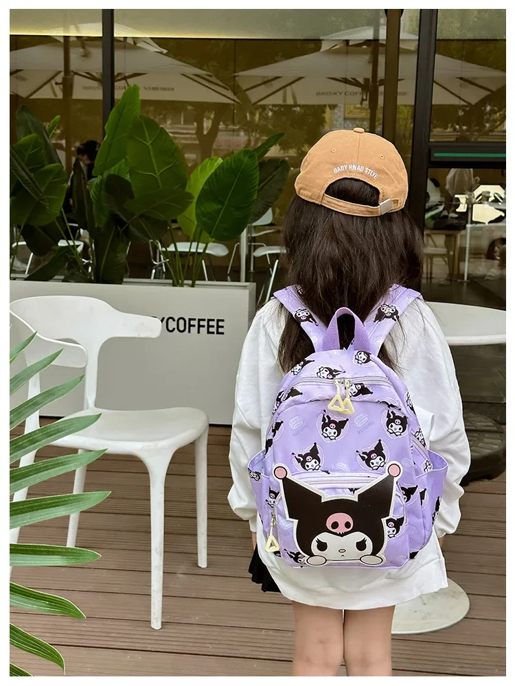 Color: SKY BLUE, Size: 16 inches - 2025 Anime Cartoon Kuromi Melody Cinnamoroll Backpack Boys Girls Cartoon Hello Kitty Kawaii Canvas Fashion Children's Schoolbag