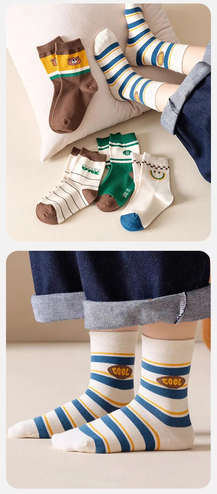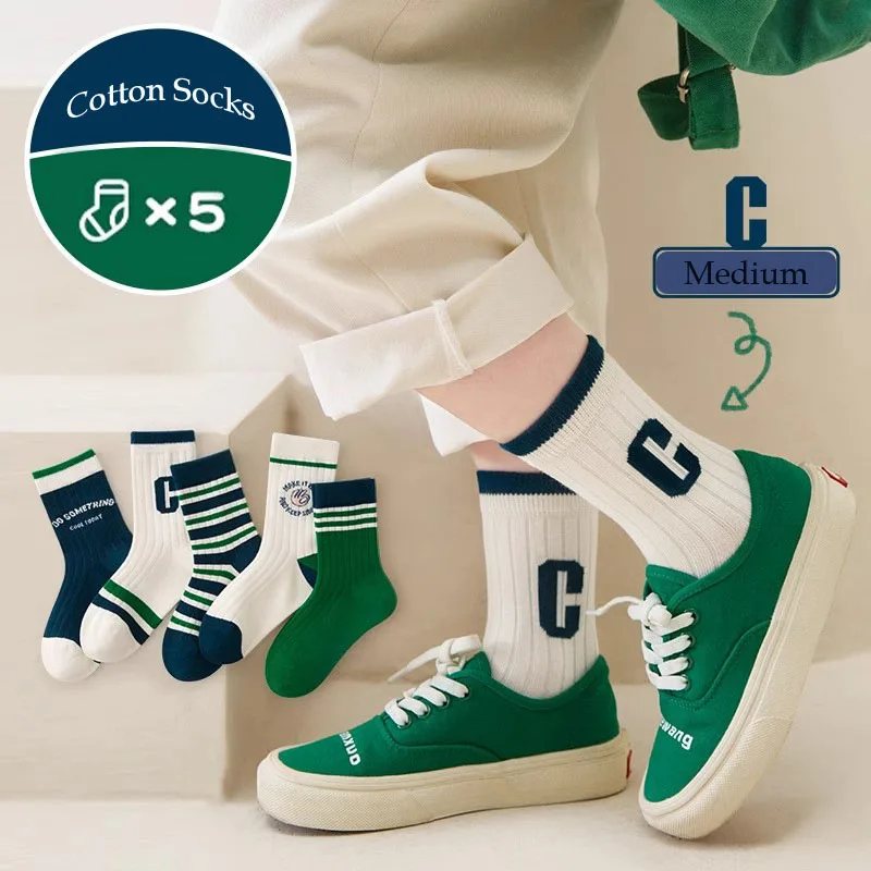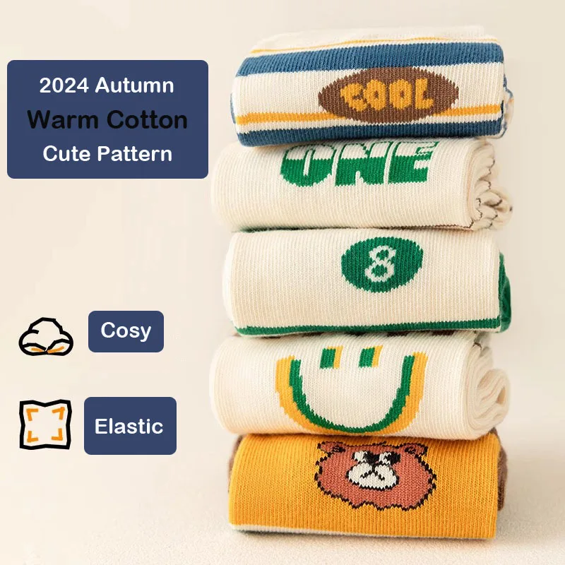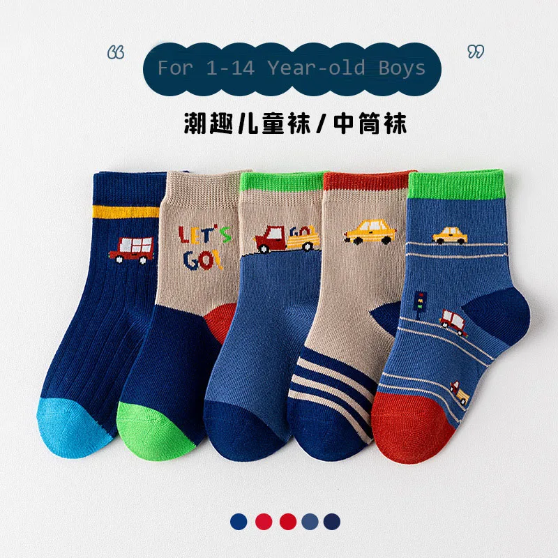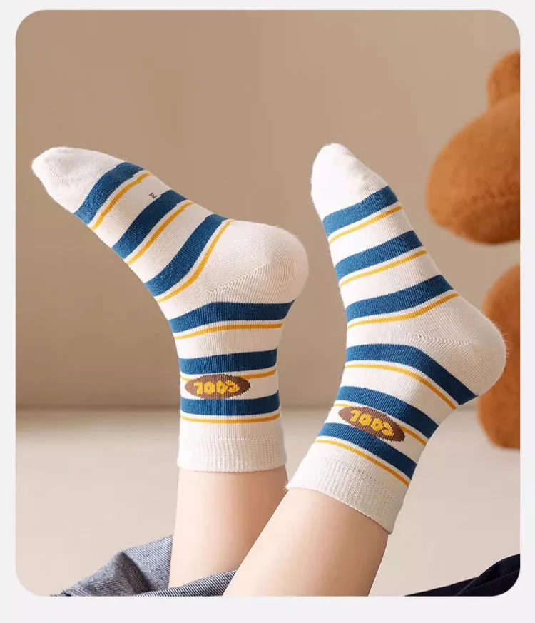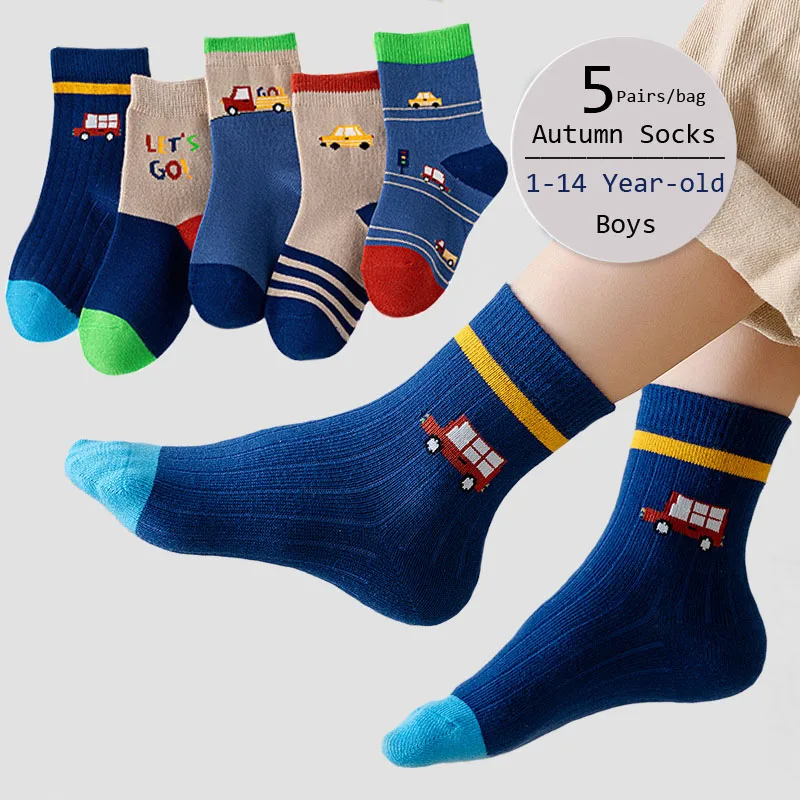 Color: SKY BLUE, Size: 2-3T - Boys Socks Spring Autumn Children Cotton Socks Baby 1-12 year-old Kids Cotton Socks Warm Cozy Calf Sock 5 Pairs/bag