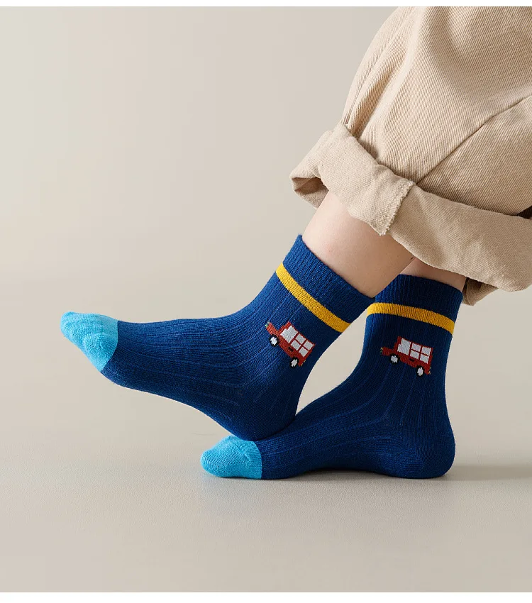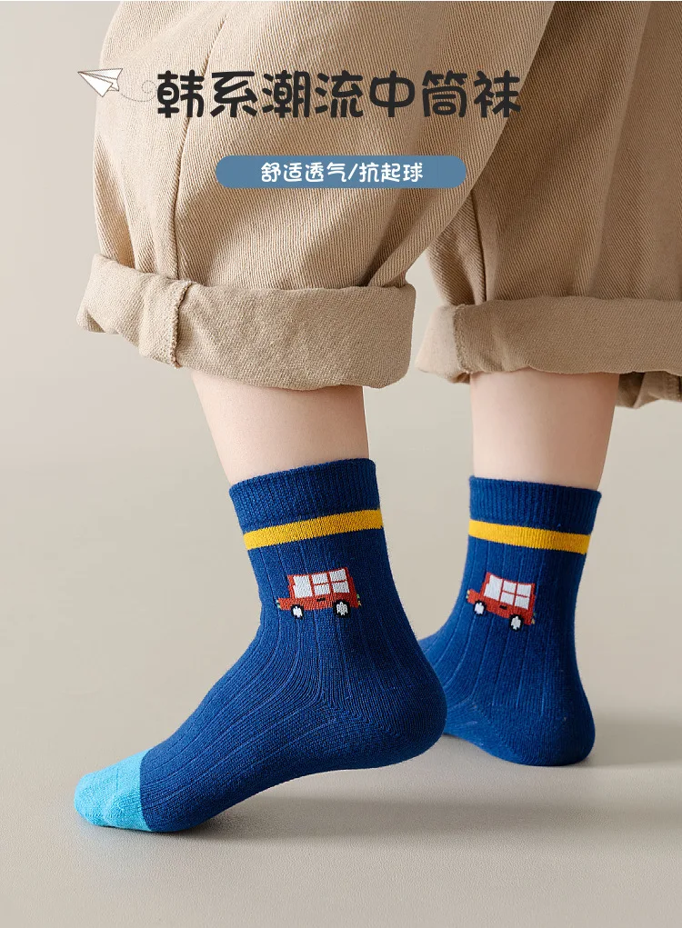 Color: SKY BLUE, Size: 4-6T - 1-14T Kids' Socks Spring Autumn Cotton Socks 5 Pairs/lot Soft Cotton Socks Calf Socks Little Big Boys Crew Sock