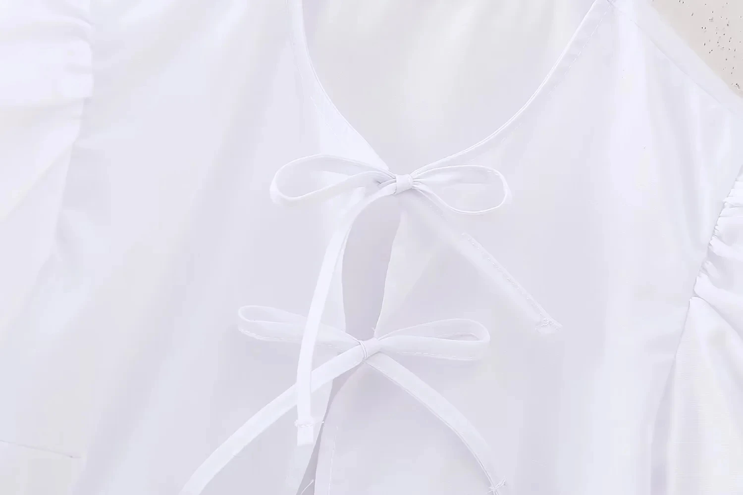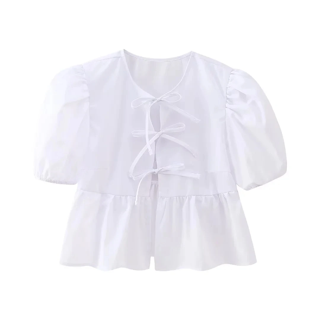Color: SKY BLUE, Size: L - HH Fashion Solid Hollow Out Shirt Women Causal O Neck Short Sleeved Lace Up Tops Chic Female Casual Blouse Streetwear 2024