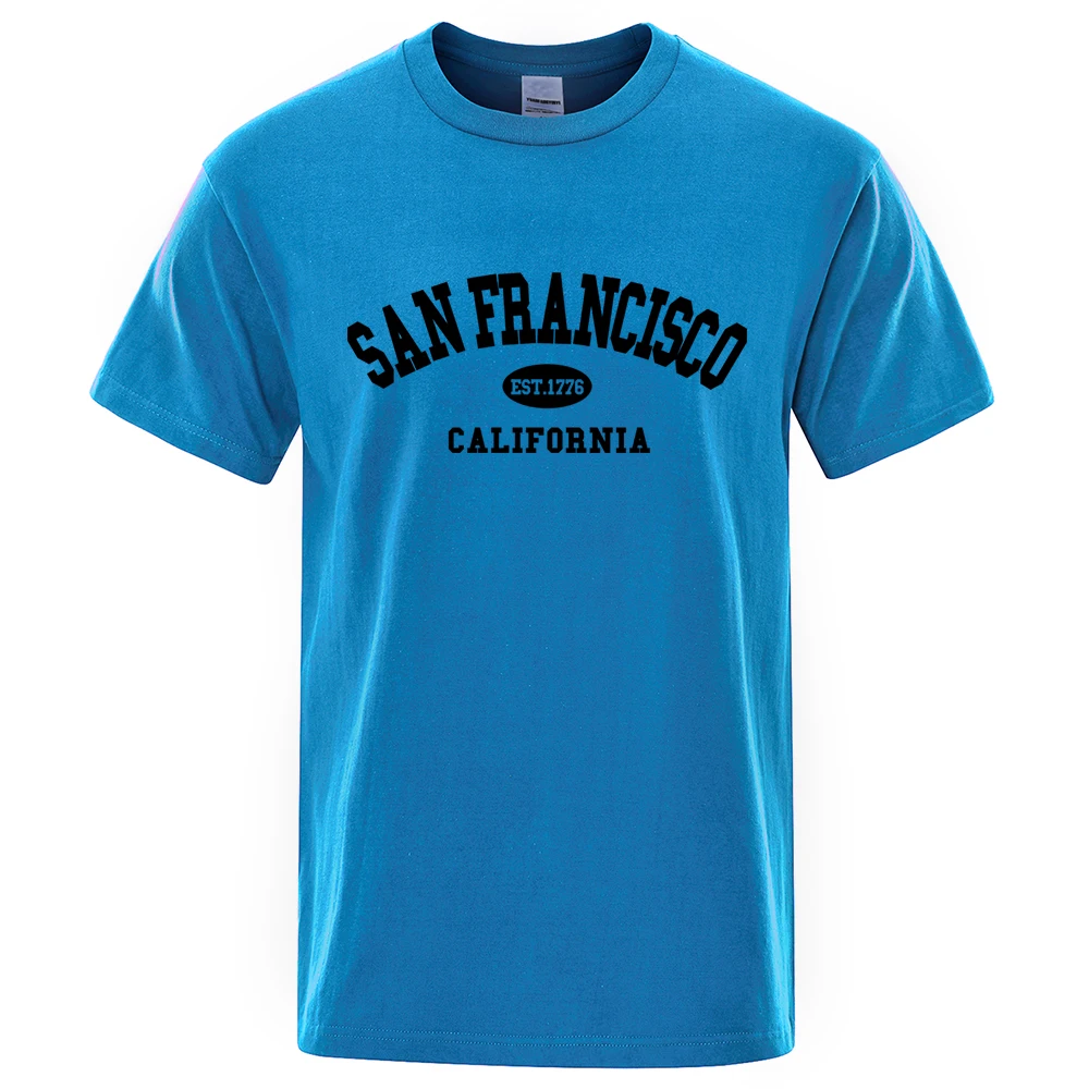 Color: SKY BLUE, Size: L - Sanfrancisco Est.1776 California Letter T-Shirts Men Fashion Oversized Tops Summer Tshirt Loose Designer Luxury Tee Clothing