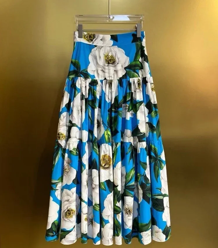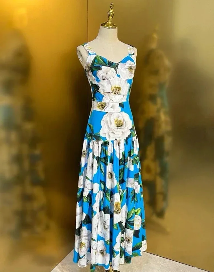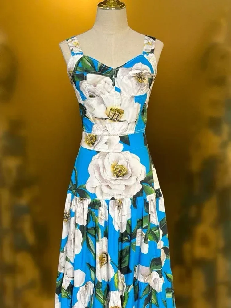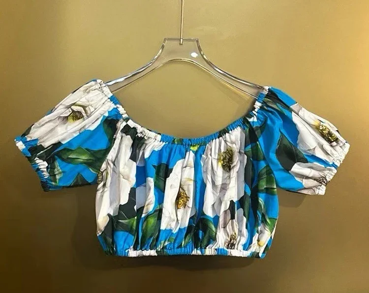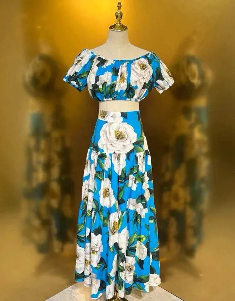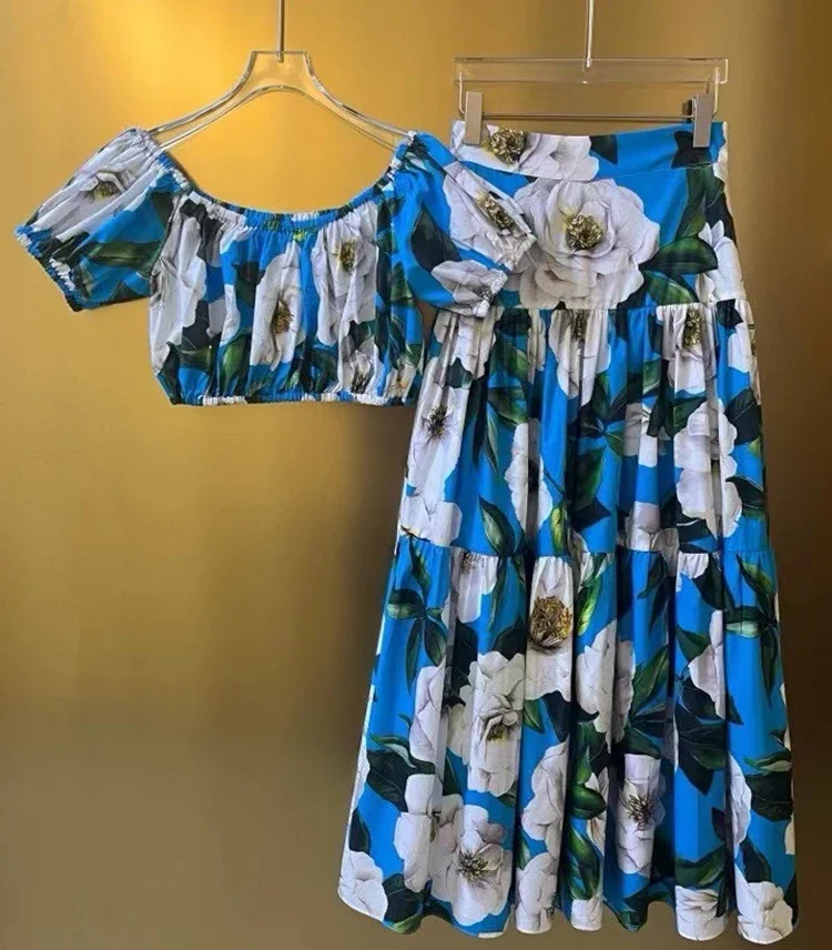 Color: SKY BLUE, Size: M, Ships From: CN - Gedivoen New Style Casual Women's Suit Sweetheart Neck Spaghetti Strap Backless Top+Fashion Half skirt Cotton Print 2-piece set