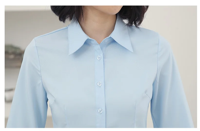 Color: SKY BLUE, Size: S - Elegant Women Shirts Woman White Shirt Long Sleeve Blouse Office Lady business Pink Shirts Button Solid Women work Blouses Tops